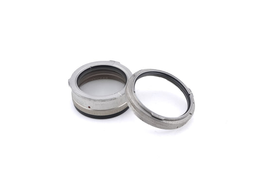 Close-up filter for TLRs with Bay II accessory bayonets introduced by Rollei. One taking lens piece and one viewing lens piece. When the Rolleinar 1 is attached to the camera lens, the usable focus distance is from 45cm to 1m. Metal body available in silver.