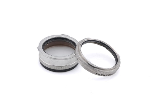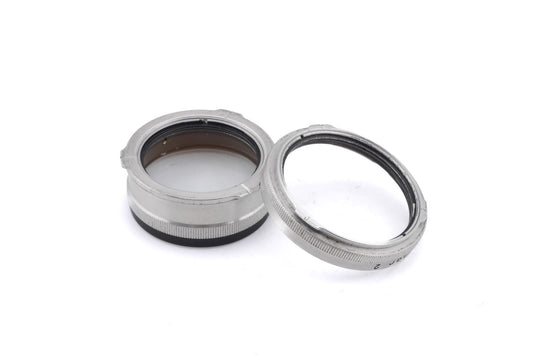Set of close-up lenses made by Rollei for TLRs with Bay 2 accessory bayonets. The larger Heidosmat-Rolleinar is for the viewing lens and includes a prism to correct for parallax error. The smaller Rolleinar is for the taking lens and enhances close focus abilities, allowing for focus between 32 and 50cm.