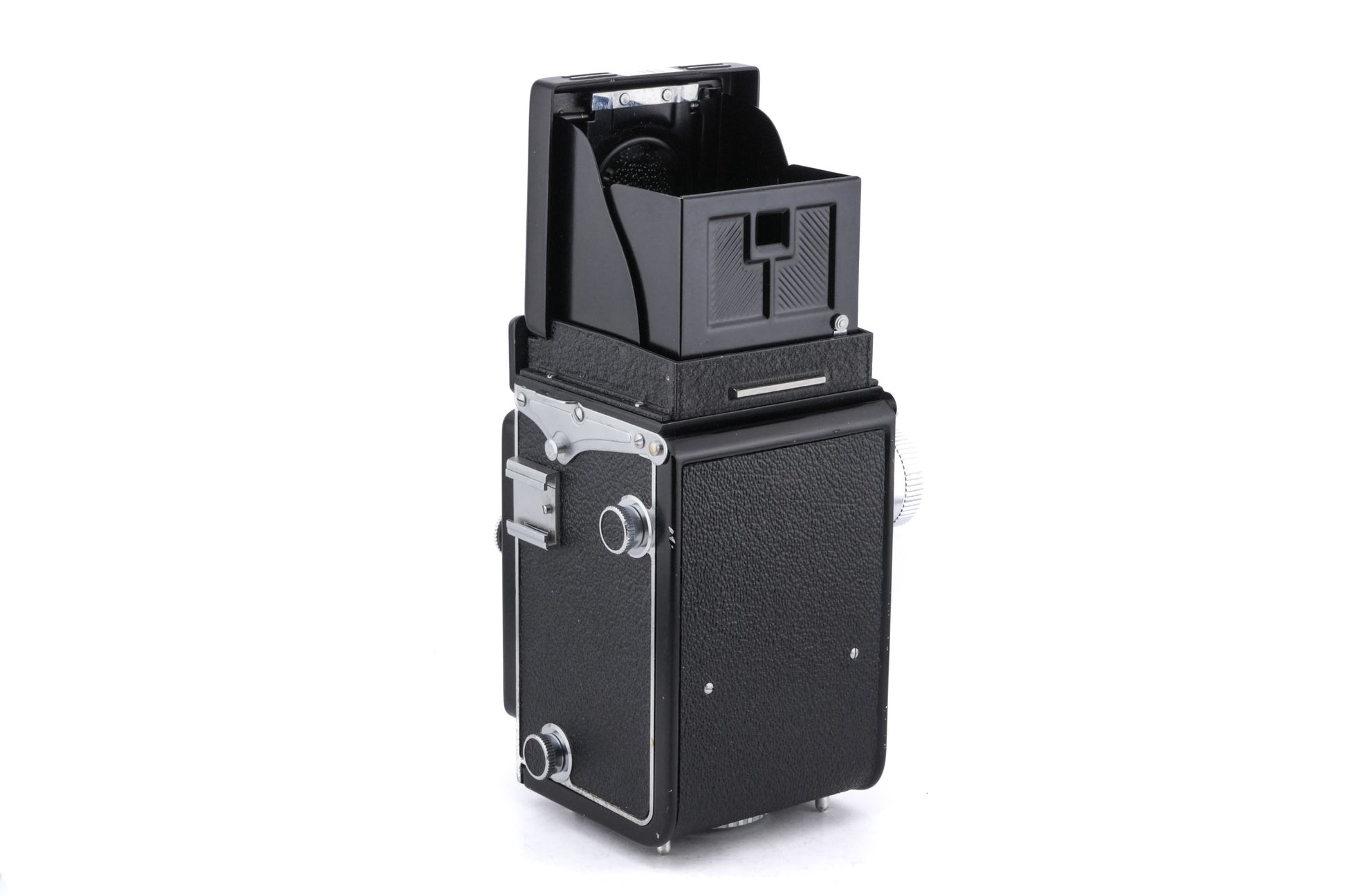 Medium format TLR camera introduced by Yashica in 1957. Metal body available in black.