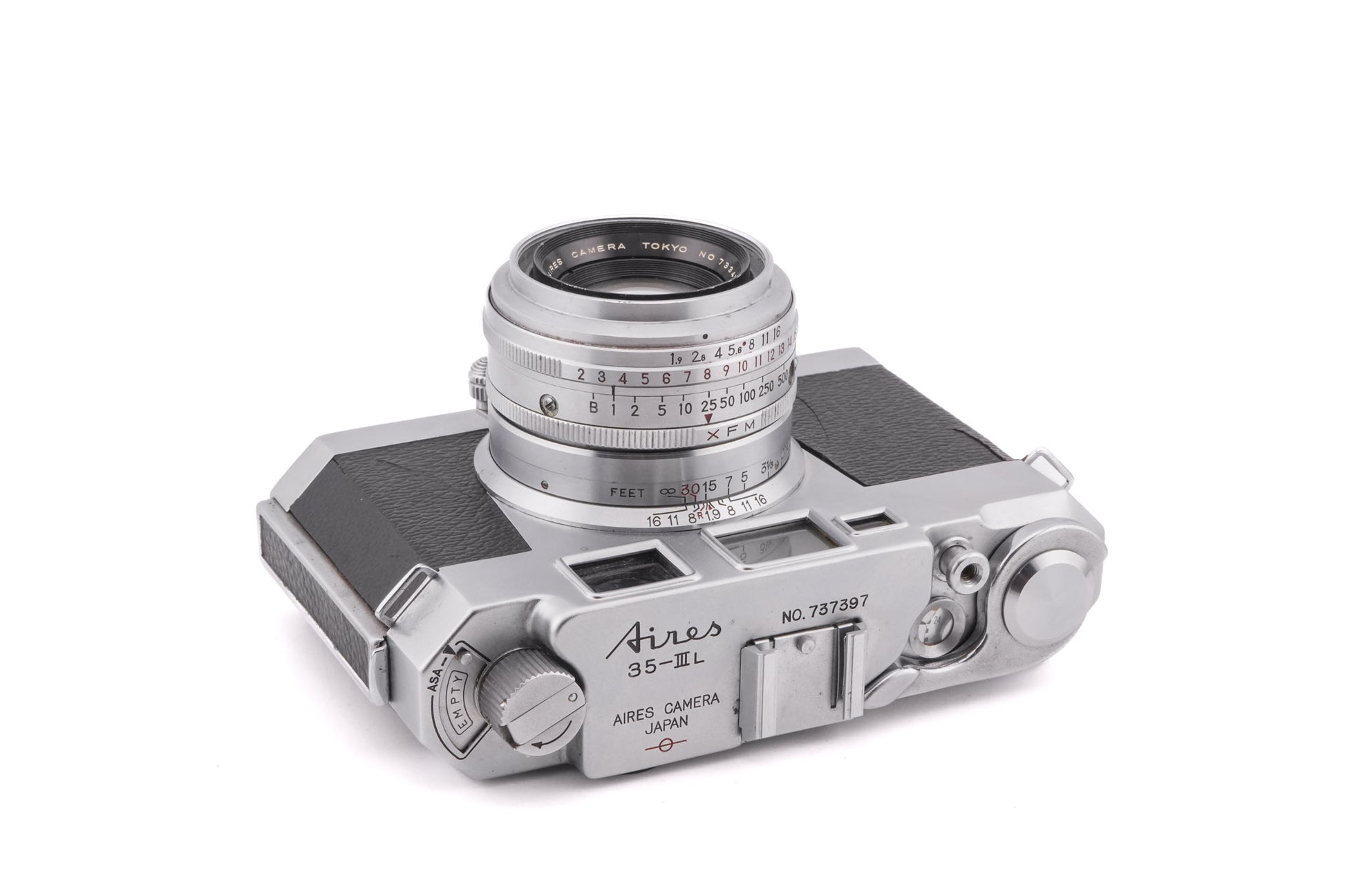 Manual focus rangefinder camera introduced by Aires. Metal body available in silver.