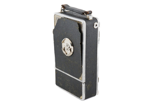 Manual focus 8mm film camera released by Braun in 1938. Metal body available in black.