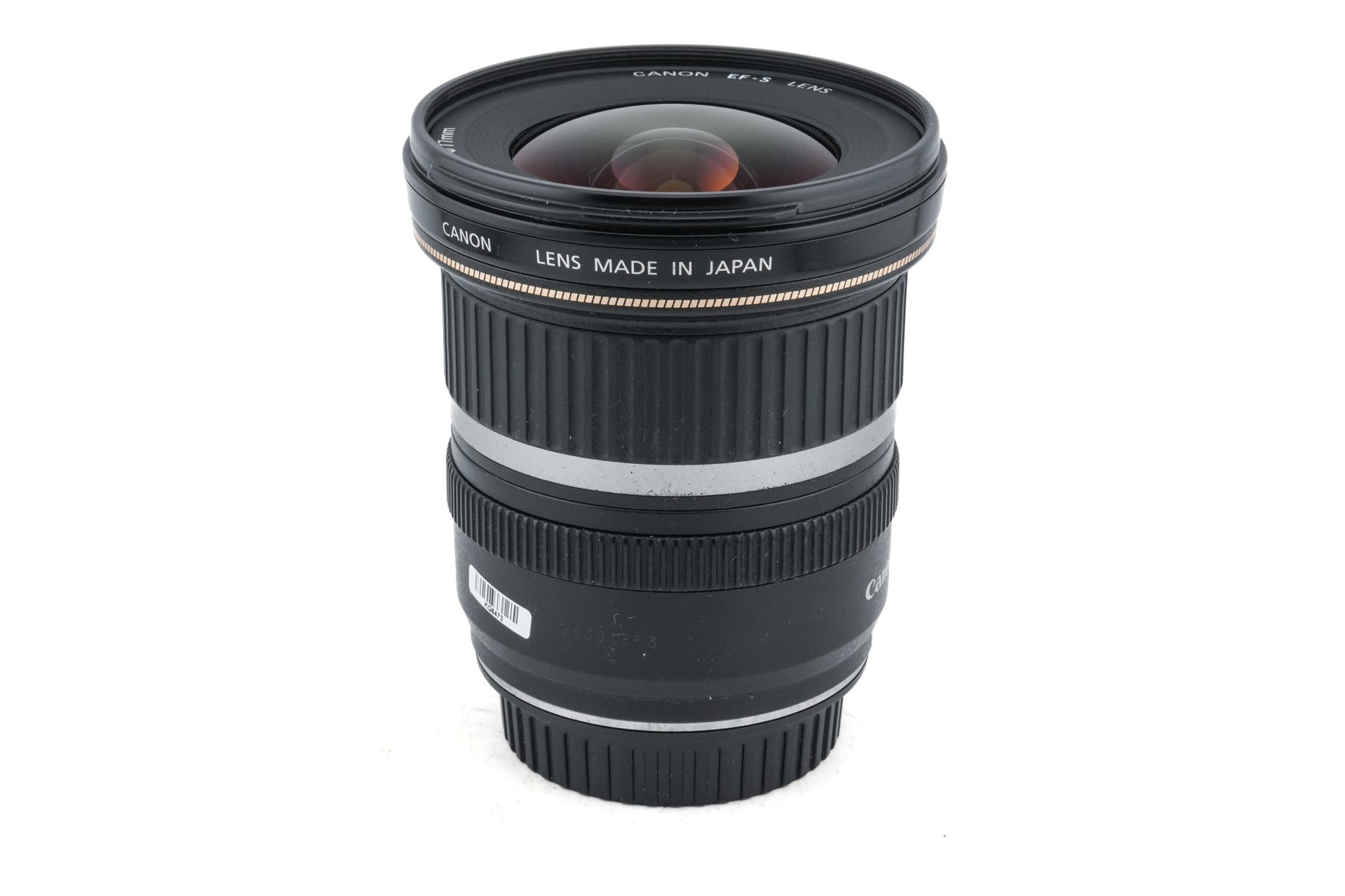 Autofocus wide-angle zoom lens made for EF-S-mount digital SLRs by Canon in 2005. It is designed for APS-C-sized sensors and gives the equivalent field of view to a 15-33mm lens on full frame/35mm. It uses an ultrasonic focusing motor (USM) for autofocus. Plastic and metal body available in black.