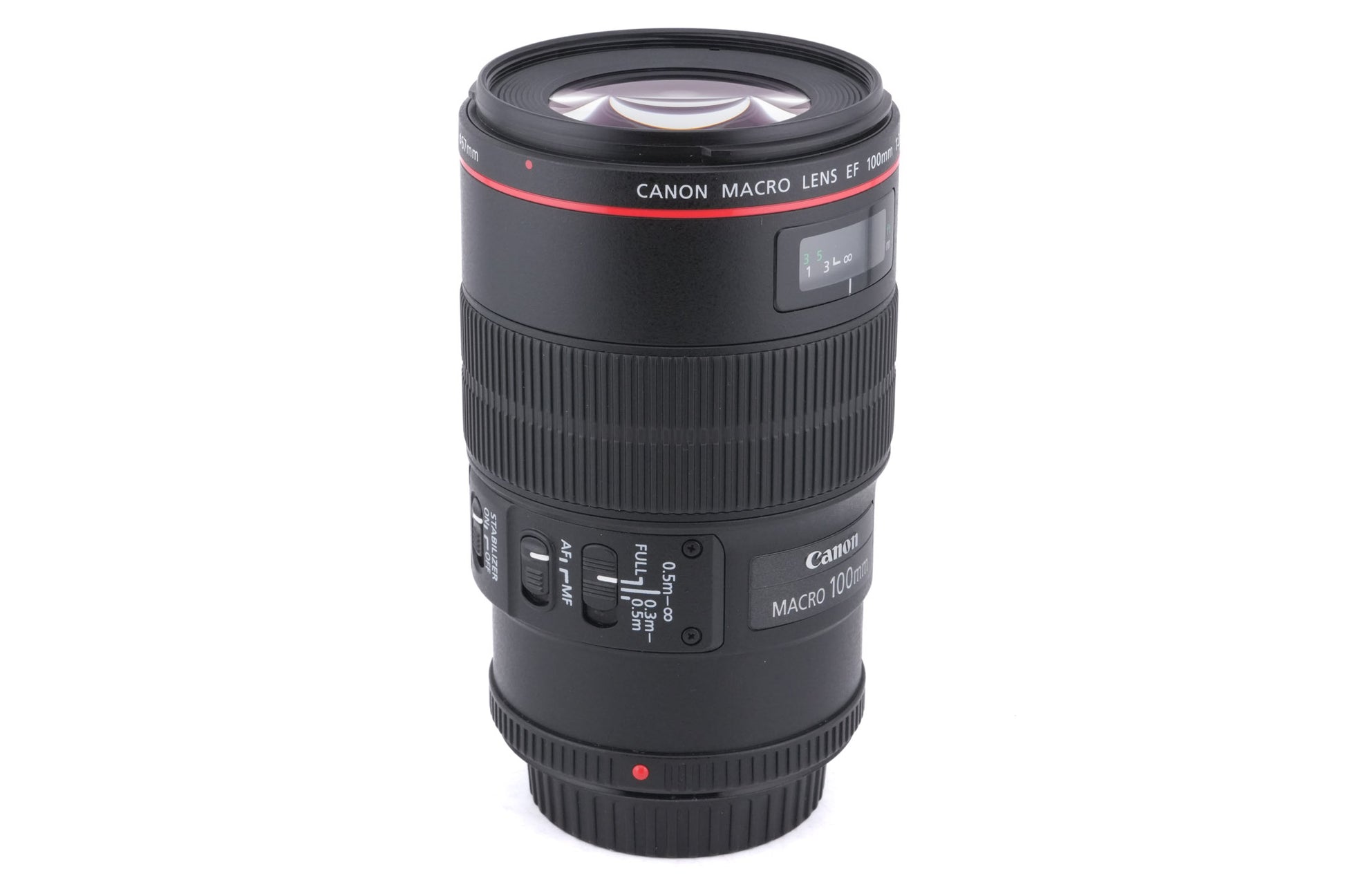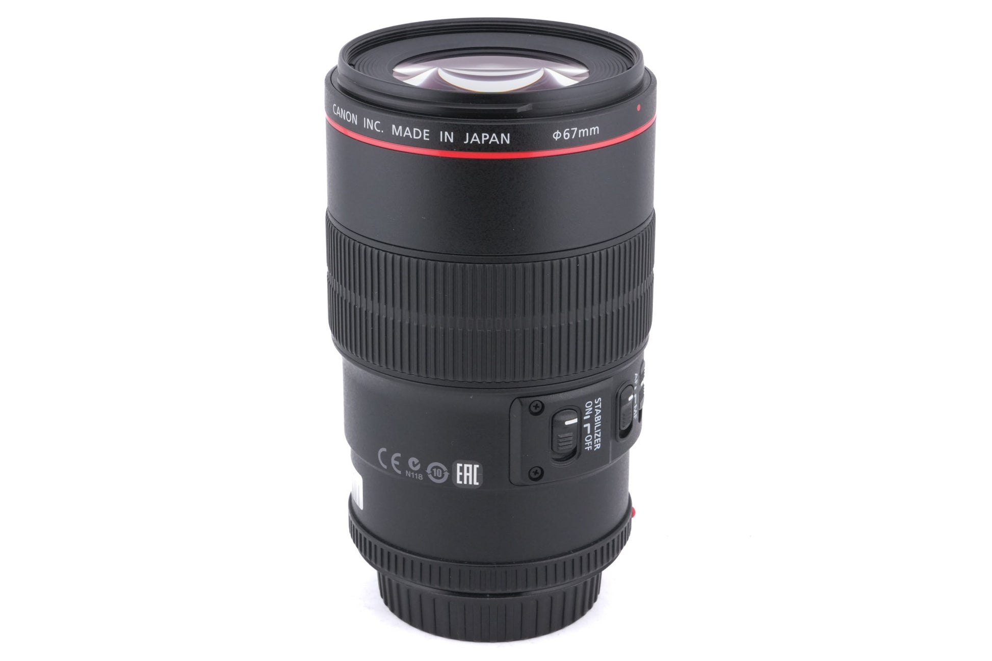 Autofocus macro/telephoto lens made for EF-mount DSLR cameras introduced by Canon. It is part of Canon's L series of professional lenses and has a weather-sealing gasket. It has an image stabilizer (IS) and an ultrasonic focusing motor (USM). Plastic and metal body available in black.