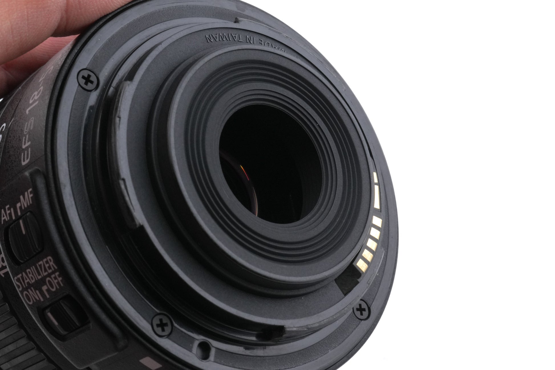 Autofocus zoom lens made for EF-S mount digital SLRs by Canon. It gives the equivalent field of view to a 27-82.5mm lens on full frame/35mm. This is the second EF-S kit lens that has image stabilization (IS). Plastic body available in black.