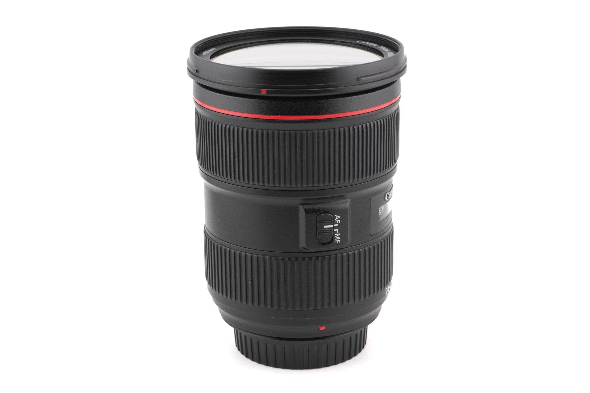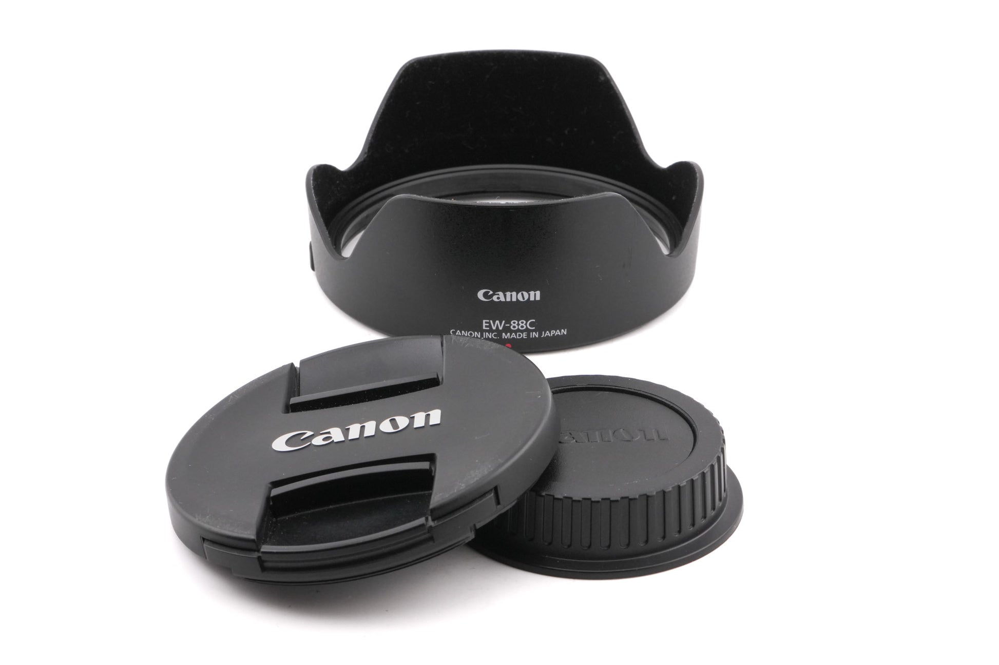 Autofocus normal zoom made for EF-mount SLR cameras by Canon. It is part of their L series of professional lenses and has a weather-sealing gasket. It also uses Canon's ultrasonic motor (USM) for autofocus. Metal and plastic body available in black.