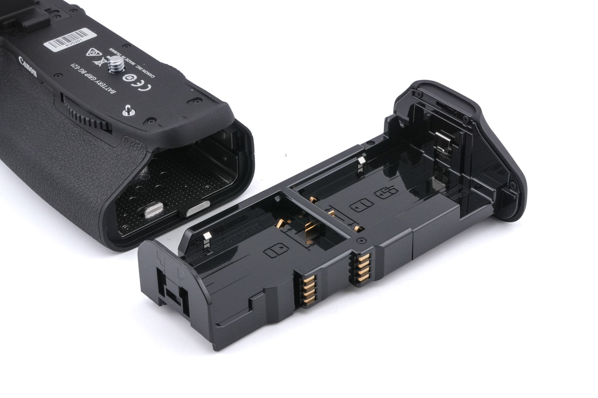 Battery grip made by Canon for the EOS 6D Mark II. It features a vertical shutter release button, AF point selection, main dial, multi-controller, AE/FE lock button, and multifunction button. Plastic body available in black.