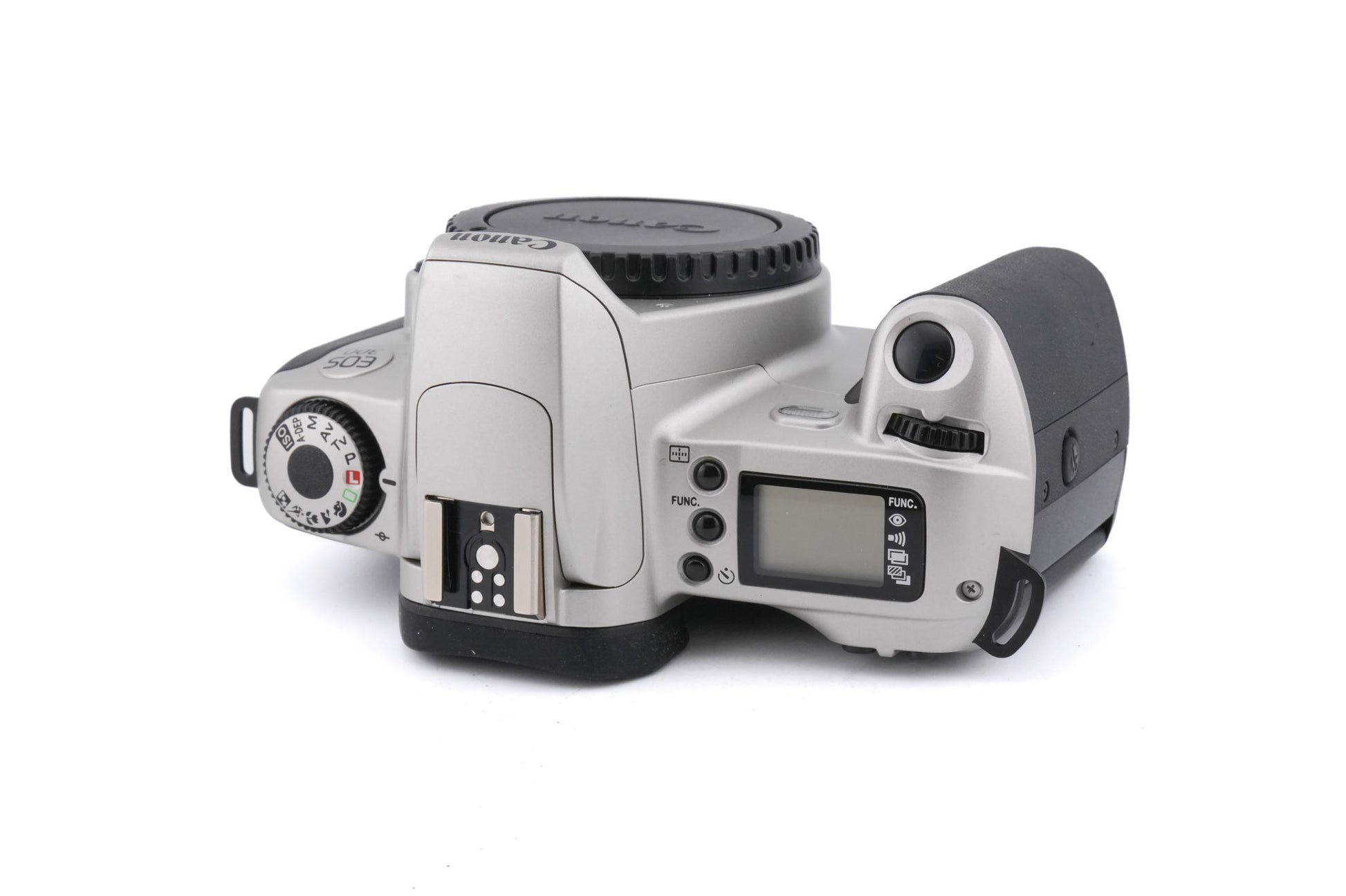 Autofocus EF-mount 35mm SLR camera introduced by Canon in 1999. Plastic body available in silver.