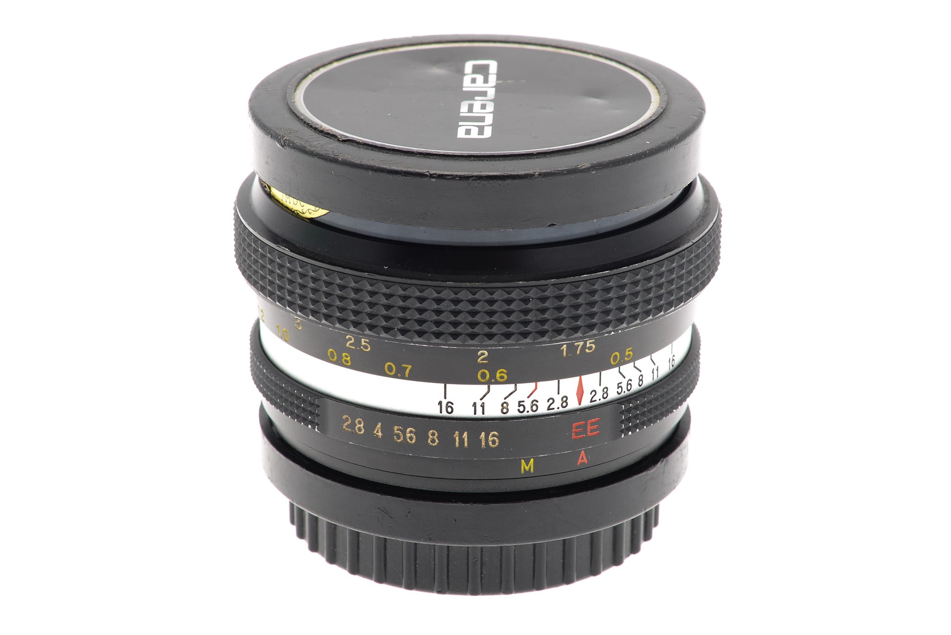 Manual focus semi wide-angle prime lens for Petri bayonet mount SLR cameras. Metal body in black and silver finish.