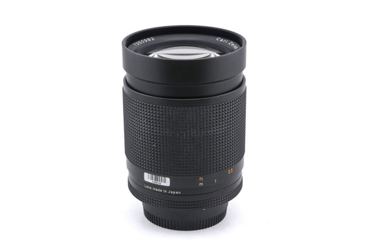Manual focus telephoto lens made for Contax/Yashica mount 35mm SLR cameras introduced by Carl Zeiss in 1980. This lens is of the newer MM variant that supports shutter priority and program modes. Metal body available in black.