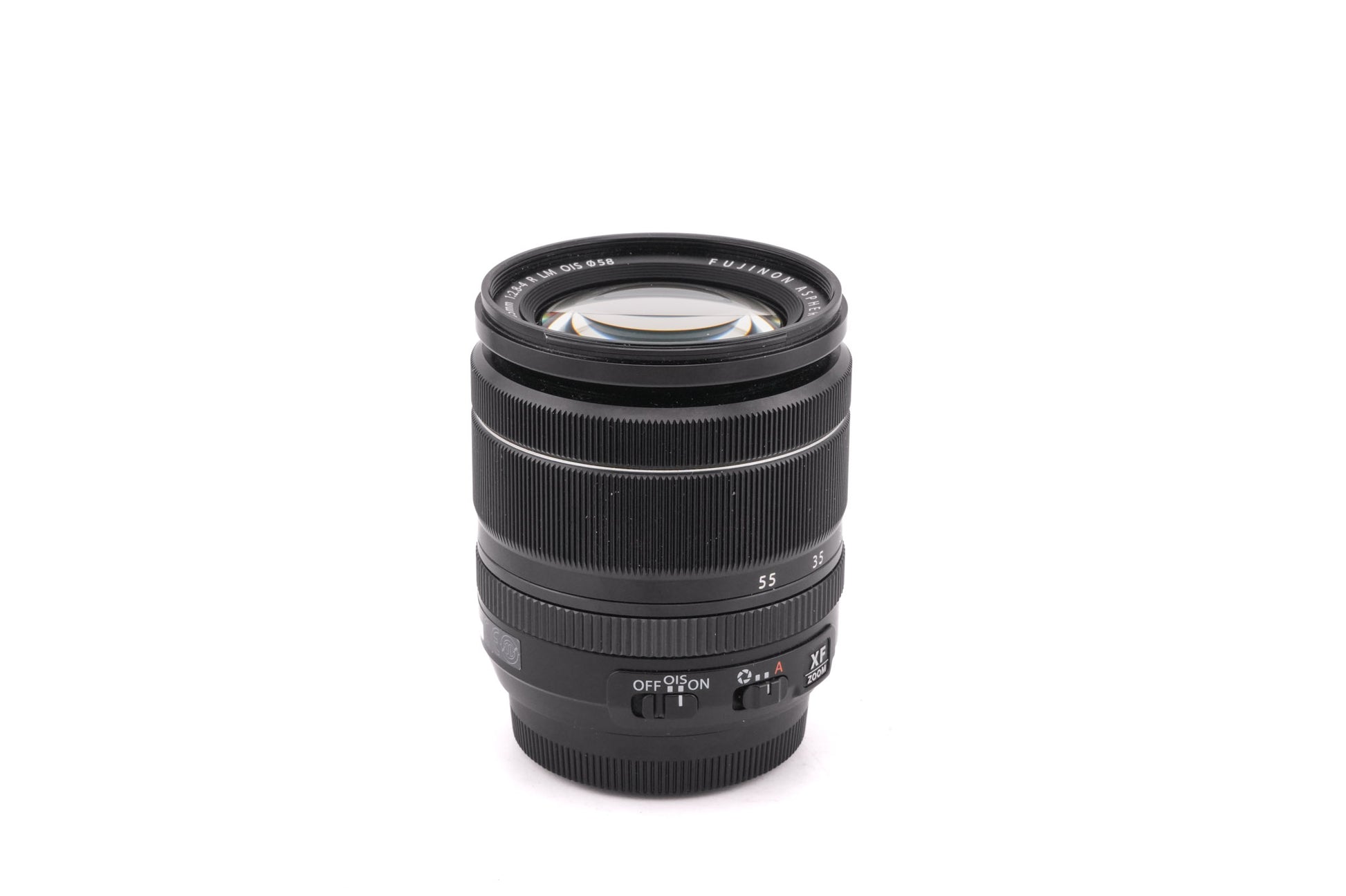 Autofocus normal zoom lens made for X-mount mirrorless digital cameras by Fujifilm. The lens is designed for APS-C-sized sensors and gives the equivalent field of view to a 27-84mm lens on 35mm / full frame. It has internal optical stabilization (OIS), a linear focusing motor (LM), and a dedicated aperture ring (R). Metal/plastic body available in black.