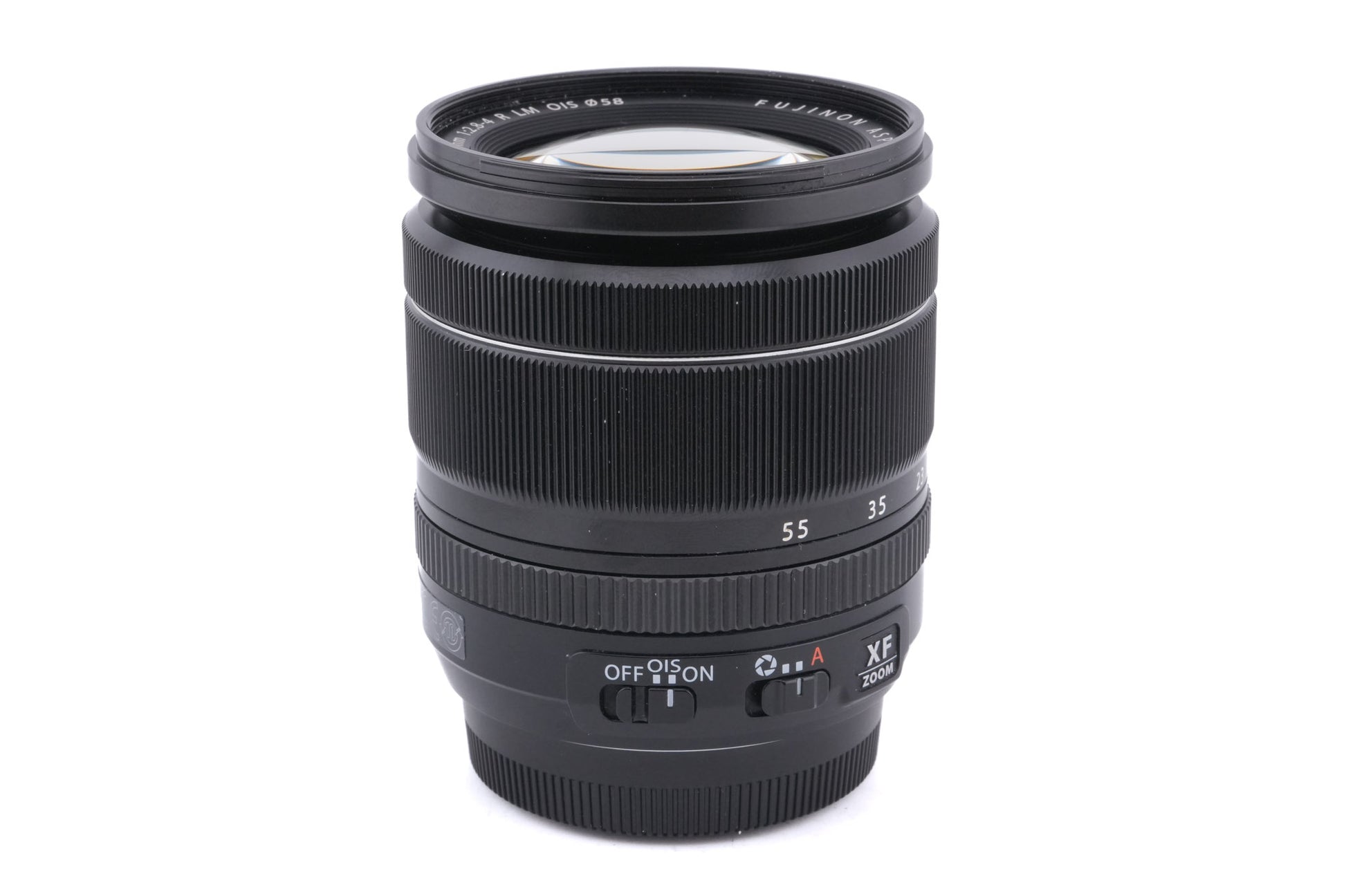 Autofocus normal zoom lens made for X-mount mirrorless digital cameras by Fujifilm. The lens is designed for APS-C-sized sensors and gives the equivalent field of view to a 27-84mm lens on 35mm / full frame. It has internal optical stabilization (OIS), a linear focusing motor (LM), and a dedicated aperture ring (R). Metal/plastic body available in black.