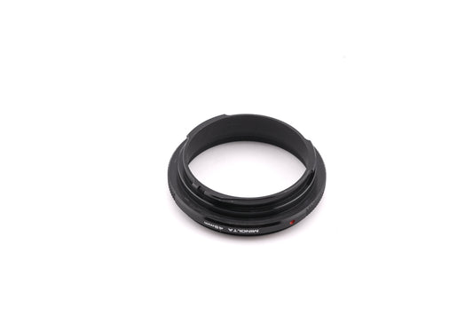 Lens mounting adapter made for reverse mounting lenses with 49mm filter threads on MD-mount cameras. Available in different designs.