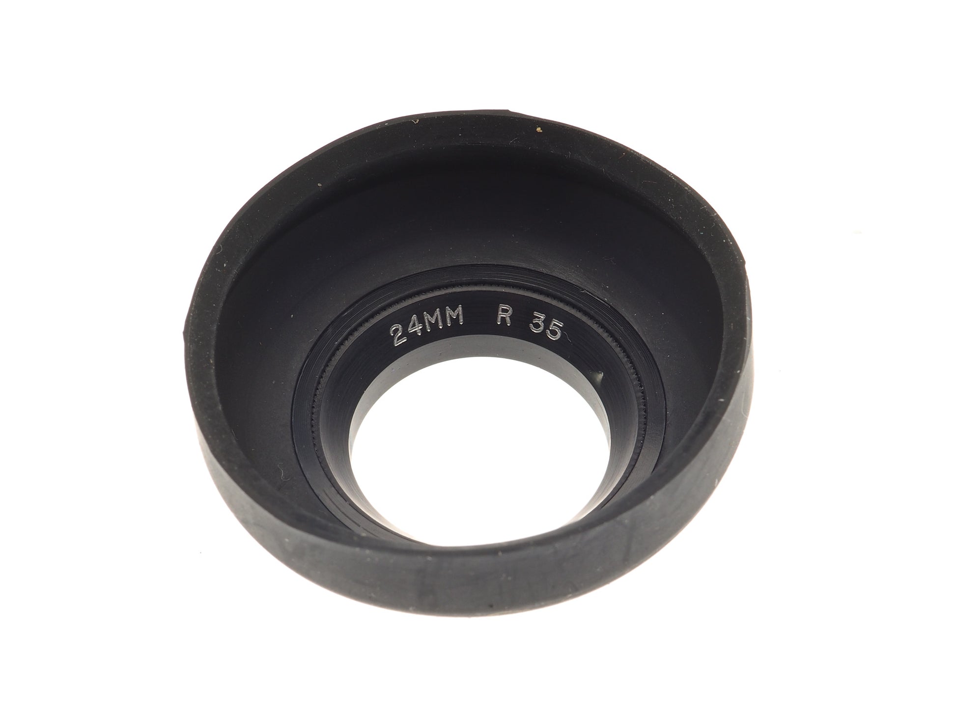 Collapsible rubber hood from Hama, will fit all lenses with 24mm threads.