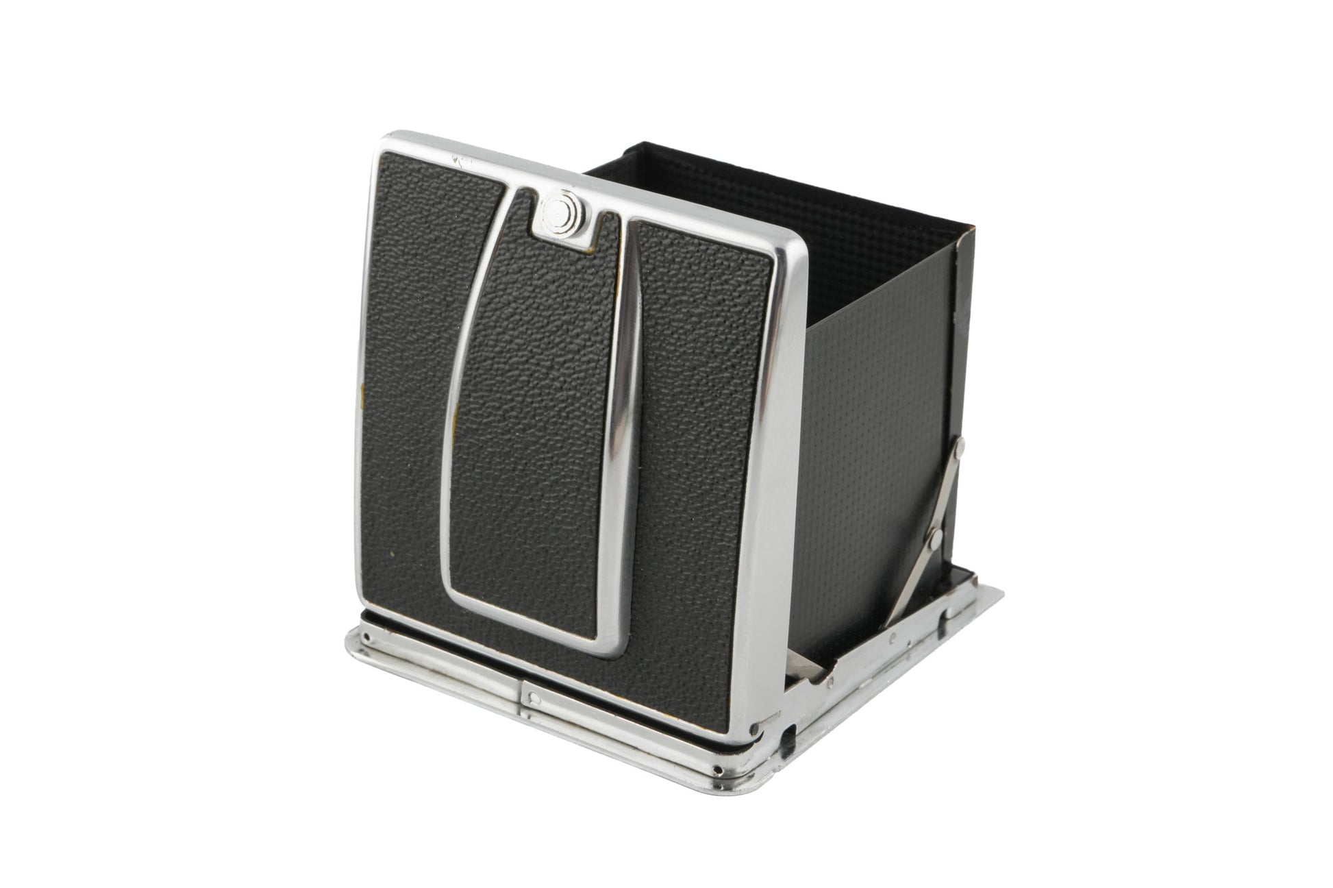 Waist level viewfinder made for V series 120 SLRs by Hasselblad starting in 1957. It was sold with the original 500C and is identifiable by the metal arms on the sides when it is extended. Metal body available in chrome.