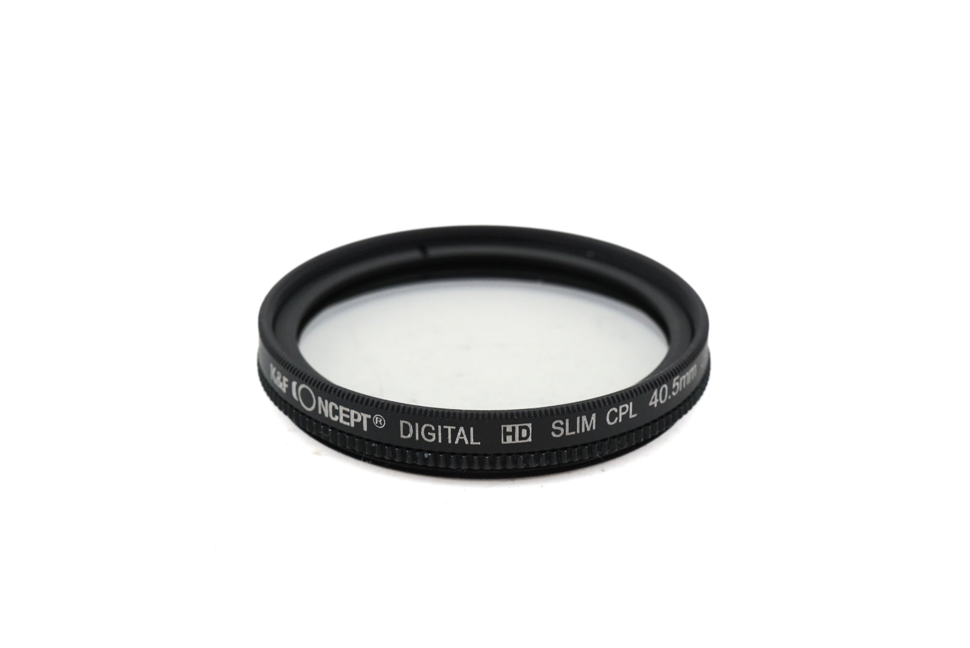 Circular polarizing filter made for lenses with 40.5mm filter threads made by K&F Concept. It removes glare from highlights and producer deeper colors. Metal construction available in black.