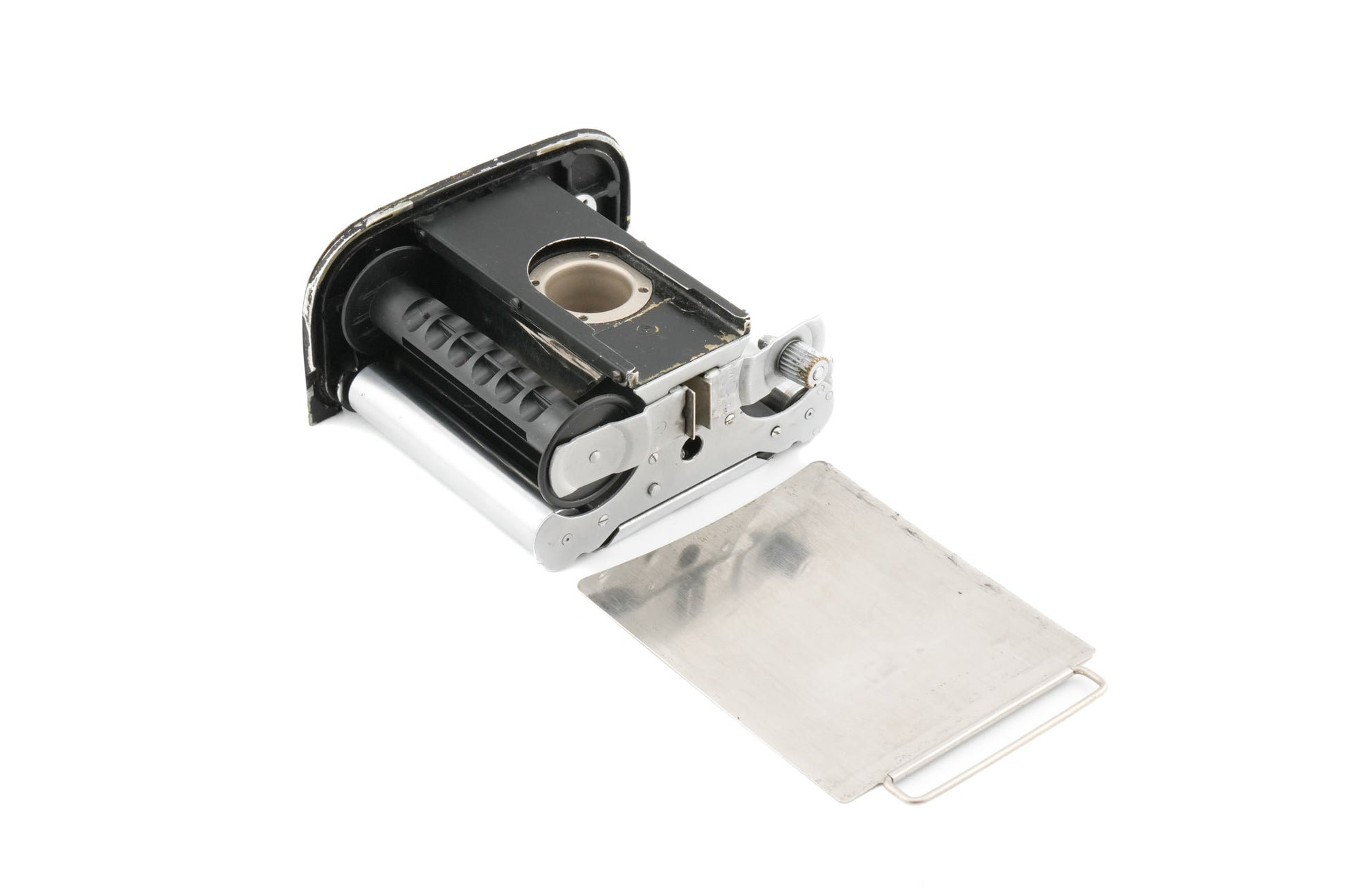 120 medium format film magazine made for Salyut mount 120 SLRs in the Soviet Union. Metal body available in silver.