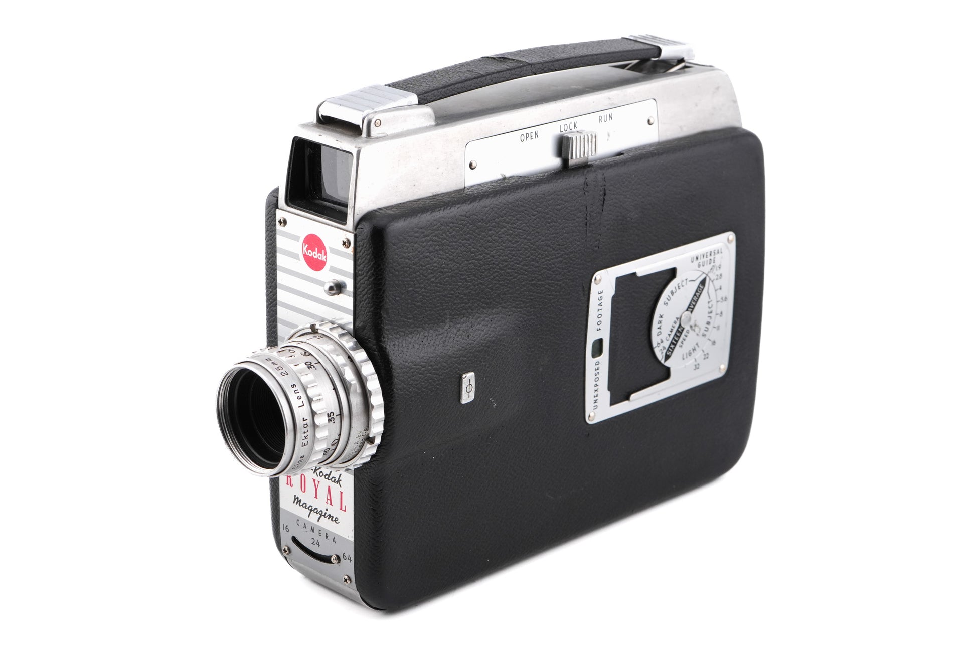Manual focus 16mm handheld video camera made by Kodak between early 1950s and 1967. Uses a a special 16mm film magazine. Metal construction available in black with silver accents.