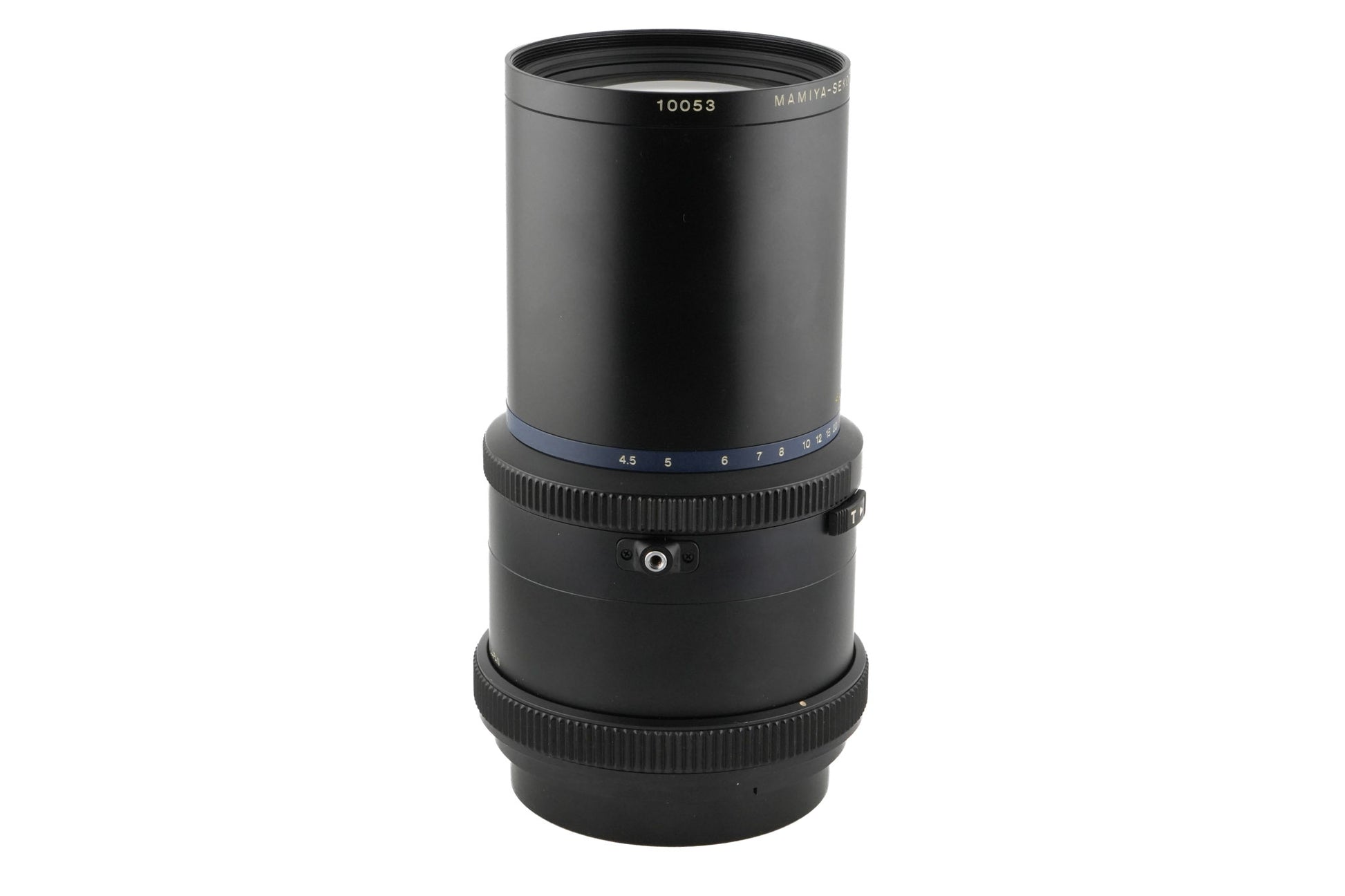 Manual focus telephoto lens made for the RZ67 system introduced by Mamiya. Metal body available in black.