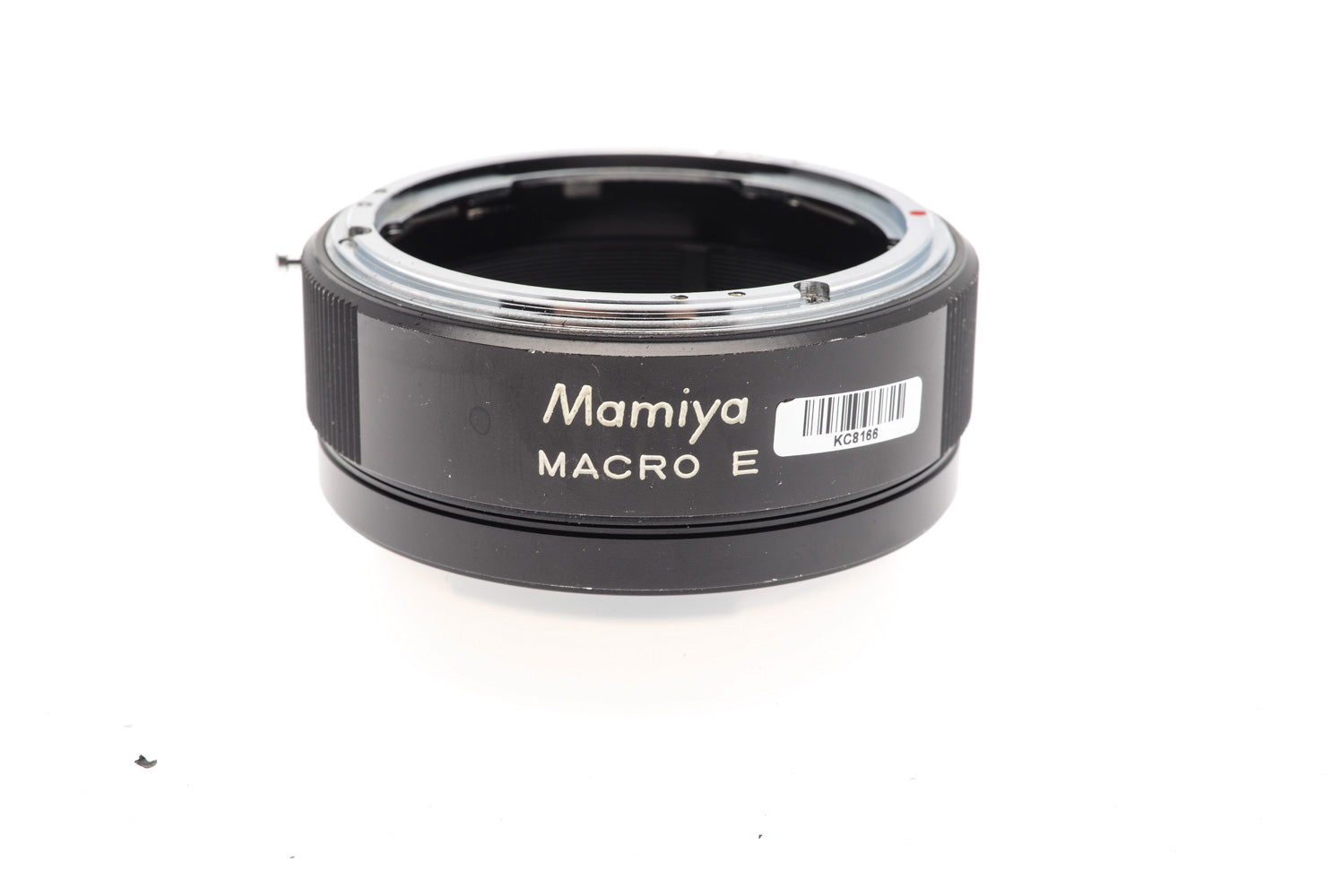 Extension tube for Mamiya Z mount 35mm SLRs. Allows for closer focus without necessarily using a dedicated macro lens. Has a mechanism for communicating aperture from lens to body.