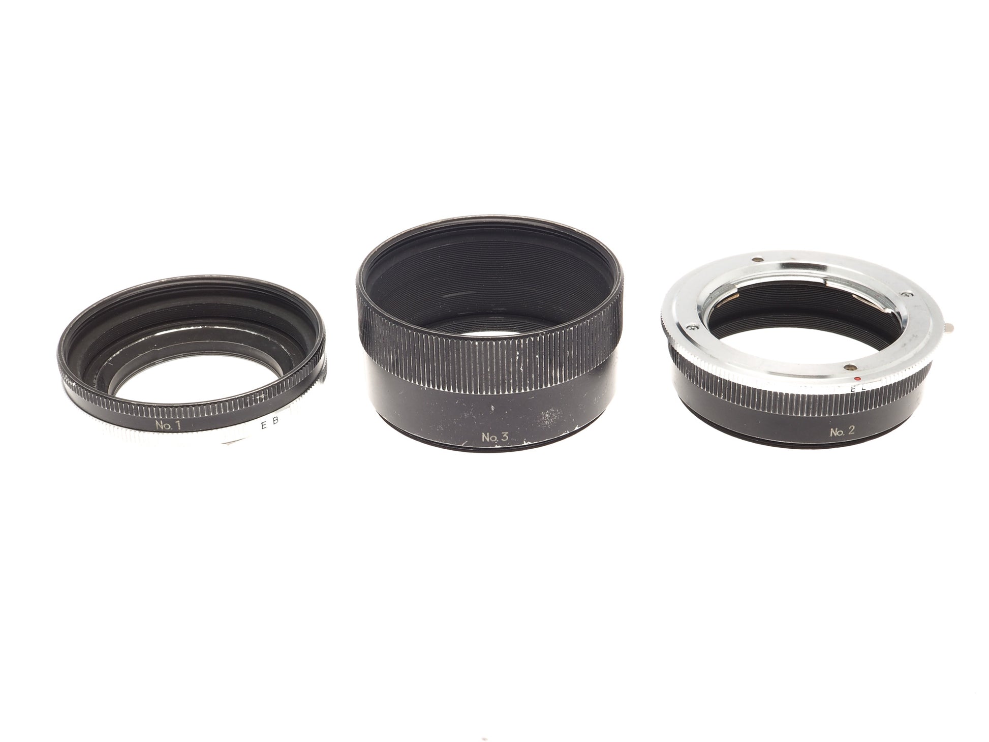 Extension tube set made by Minolta for use on Minolta MD mount cameras and lenses. Set made up of four or five pieces. Available in silver or black metal.