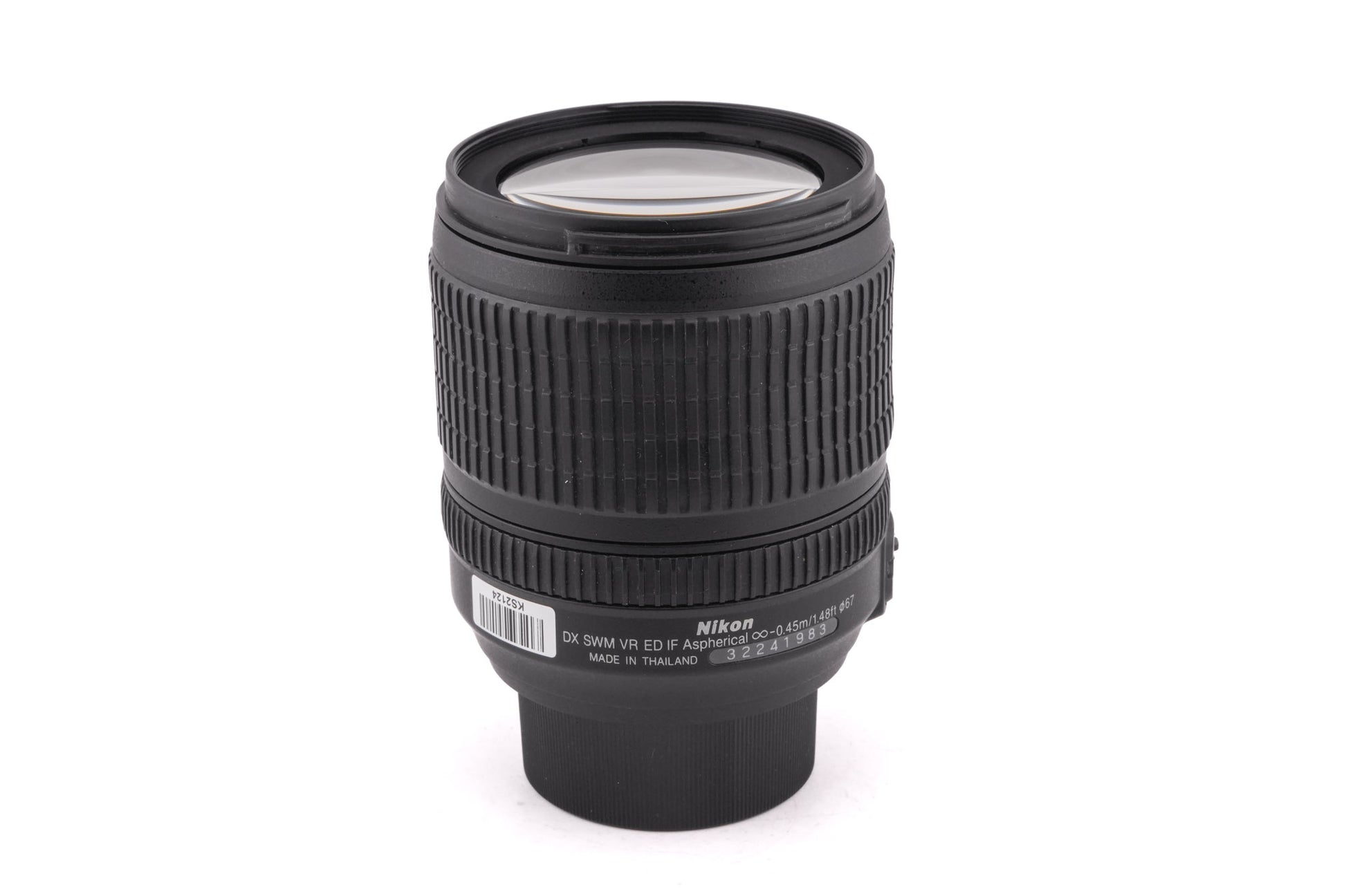 Autofocus telephoto zoom lens made for DX-mount digital SLR cameras by Nikon. It is designed for APS-C-sized sensors and gives the equivalent field of view to a 27-158 mm lens on full frame/35mm. It has image stabilization (VR). Plastic body available in black.