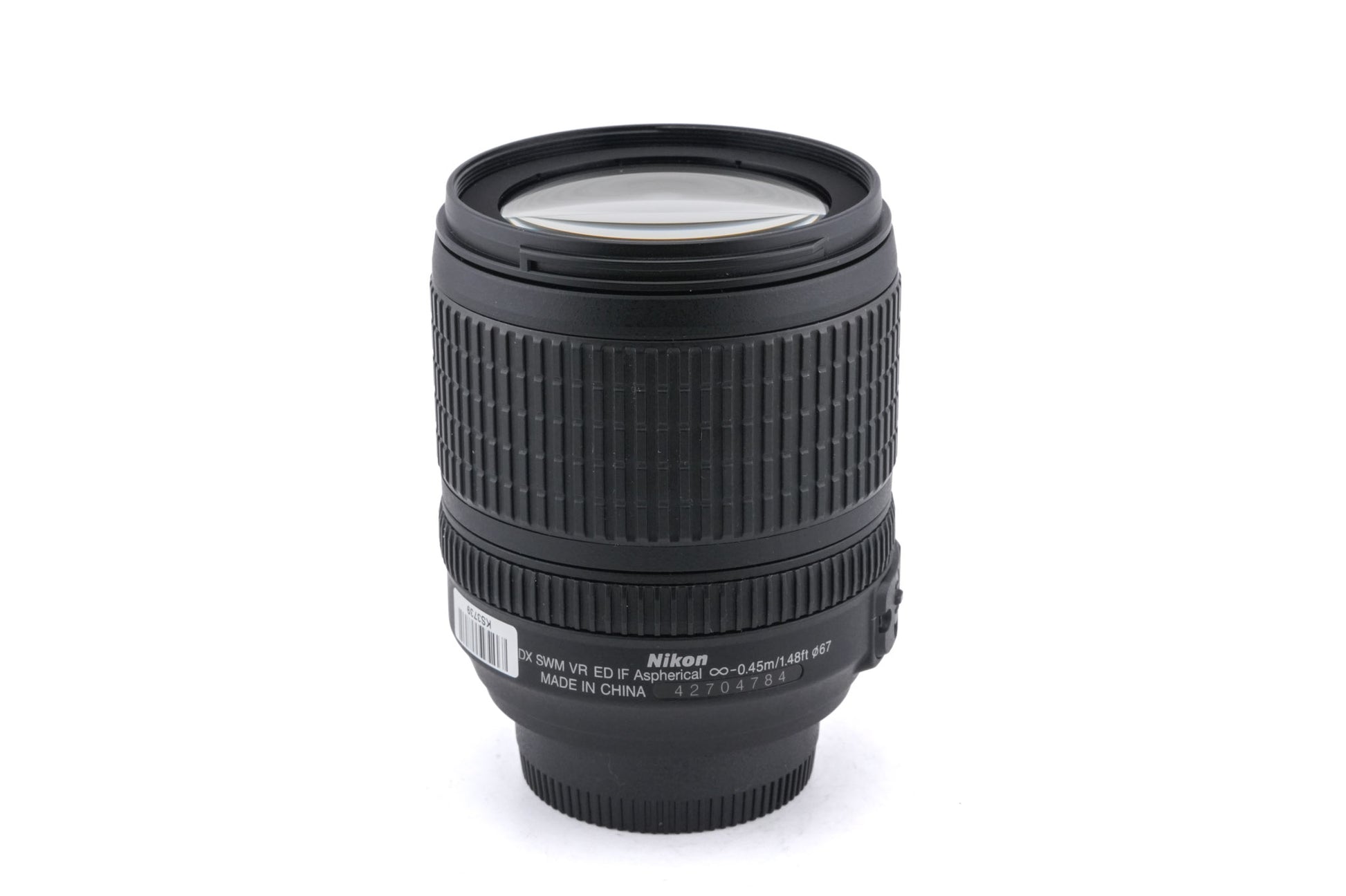 Autofocus telephoto zoom lens made for DX-mount digital SLR cameras by Nikon. It is designed for APS-C-sized sensors and gives the equivalent field of view to a 27-158 mm lens on full frame/35mm. It has image stabilization (VR). Plastic body available in black.