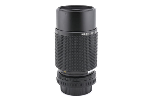 Manual focus telephoto zoom lens made for F-mount 35mm SLR cameras by Nikon. It was part of Nikon's E-series of lenses intended for budget-conscious photographers and was Nikon's first 75-150mm lens. Early versions have silver accents, later ones have black accents. The lens has the AI ridge and AI-S indent but lacks the bunny ear metering prongs. It will meter properly on most manual Nikon SLRs, excluding the F, F2, and Nikkormat cameras. Metal body available in black.