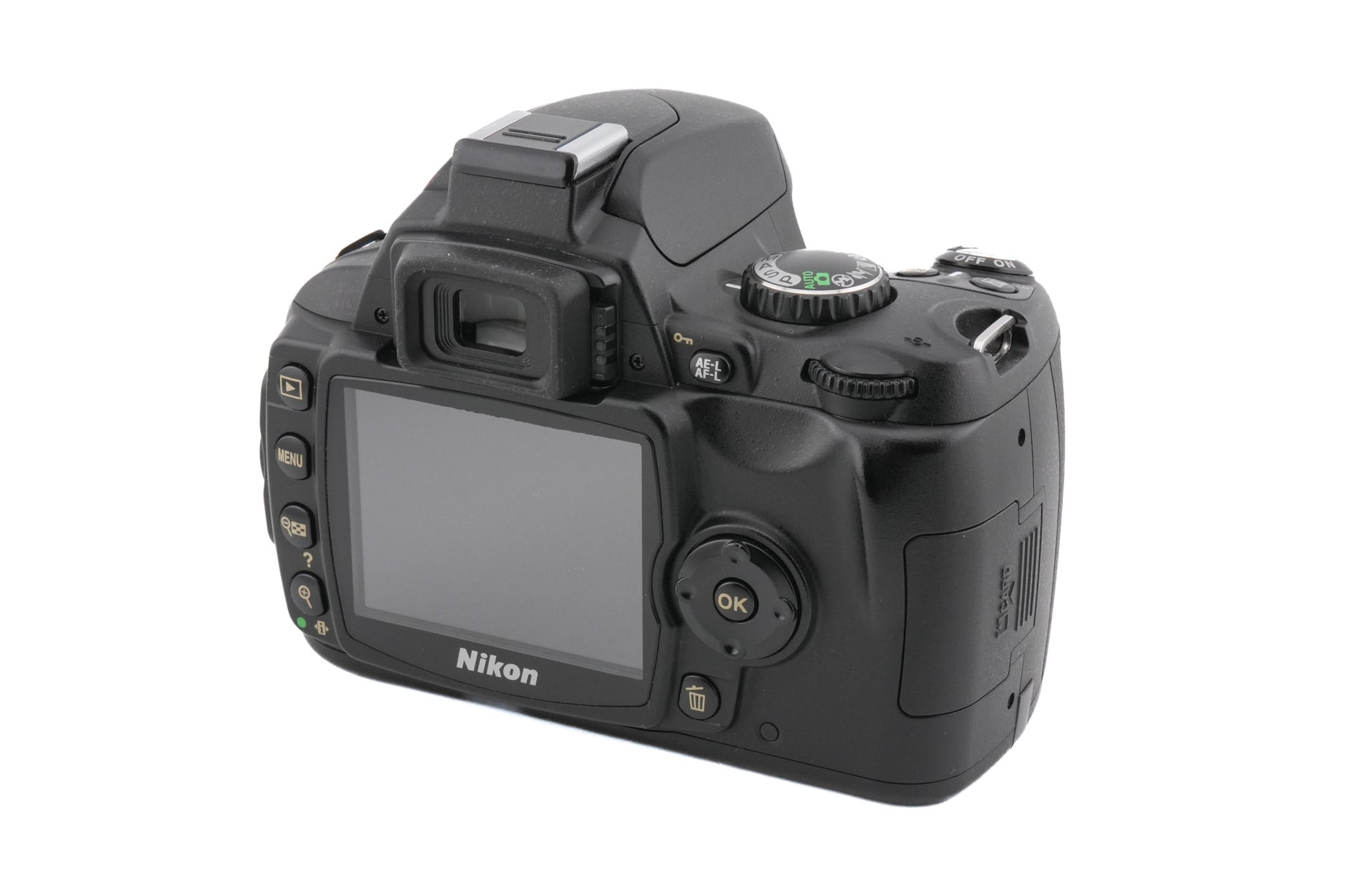 Autofocus APS-C F-mount DSLR camera released by Nikon in 2006. Plastic body available in black.