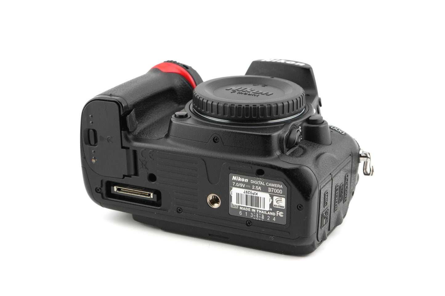 Autofocus DX-mount DSLR released by Nikon in 2010. This prosumer body was the high-end of Nikon's crop sensor lineup at the time. It has twin SD card slots and 1080p HD video recording with a mic jack for an external microphone. Magnesium alloy body available in black.