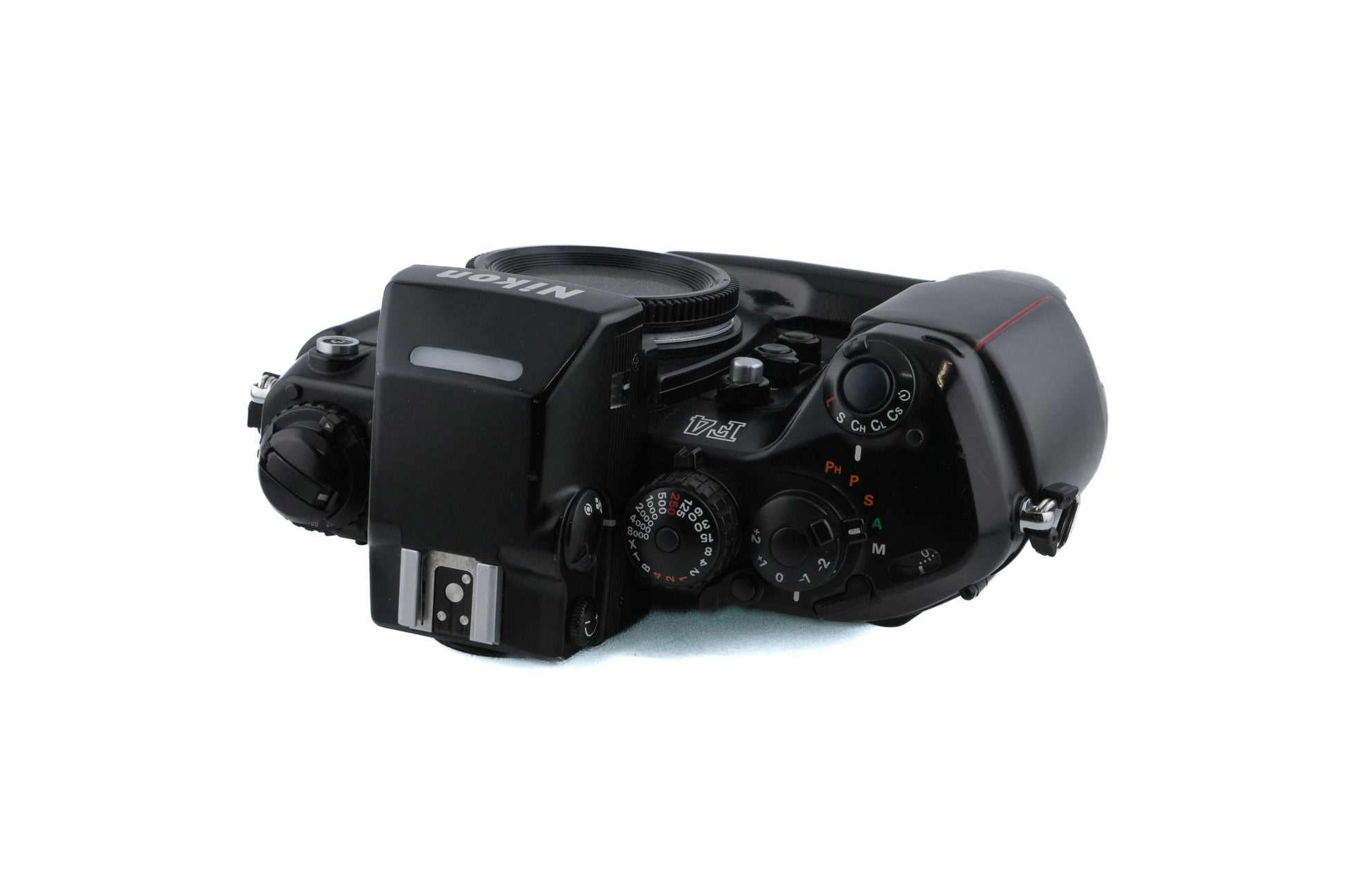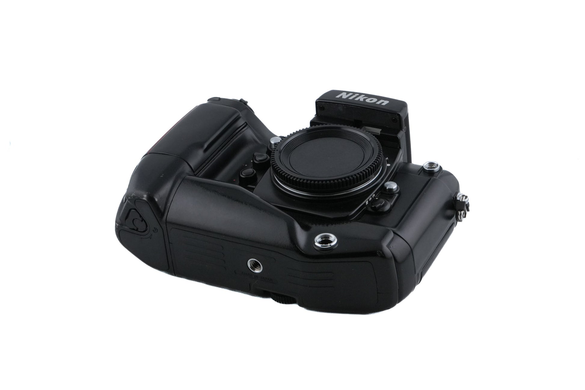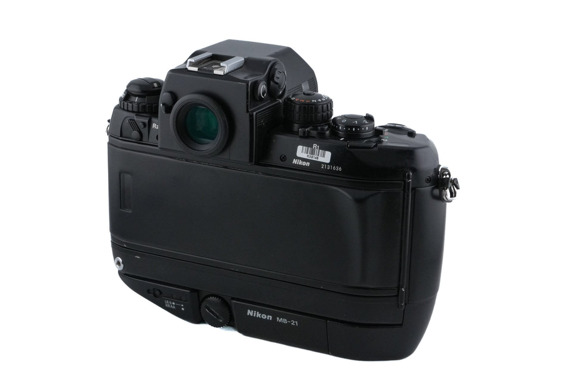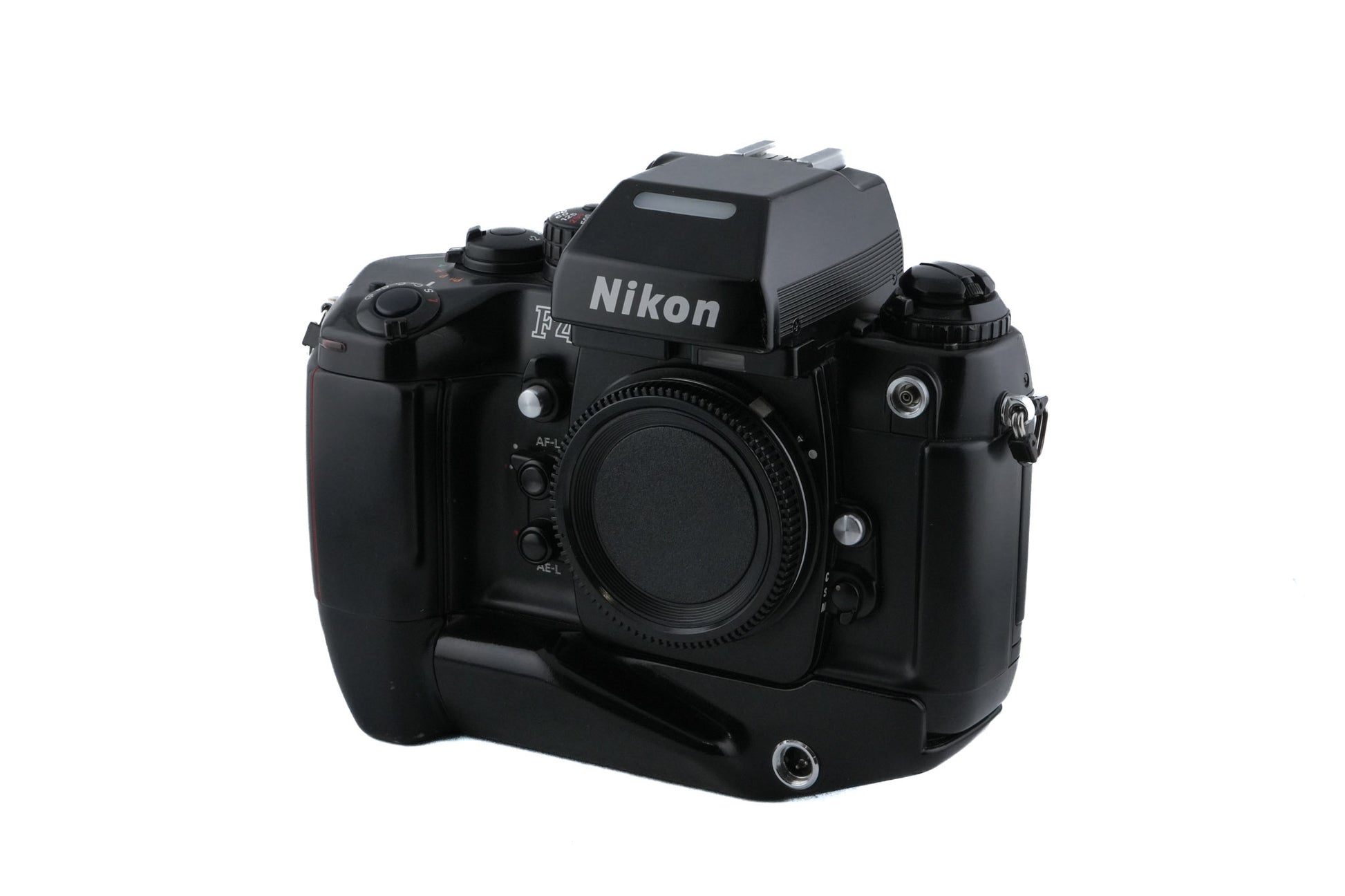 Autofocus F-mount 35mm SLR released by Nikon in 1988. The F4s is a standard F4 body with the MB-21 battery grip. Like other professional F cameras, the F4 has a wide variety of finders, focusing screens, film backs, grips, and other accessories. Metal and plastic body available in black with a red accent.