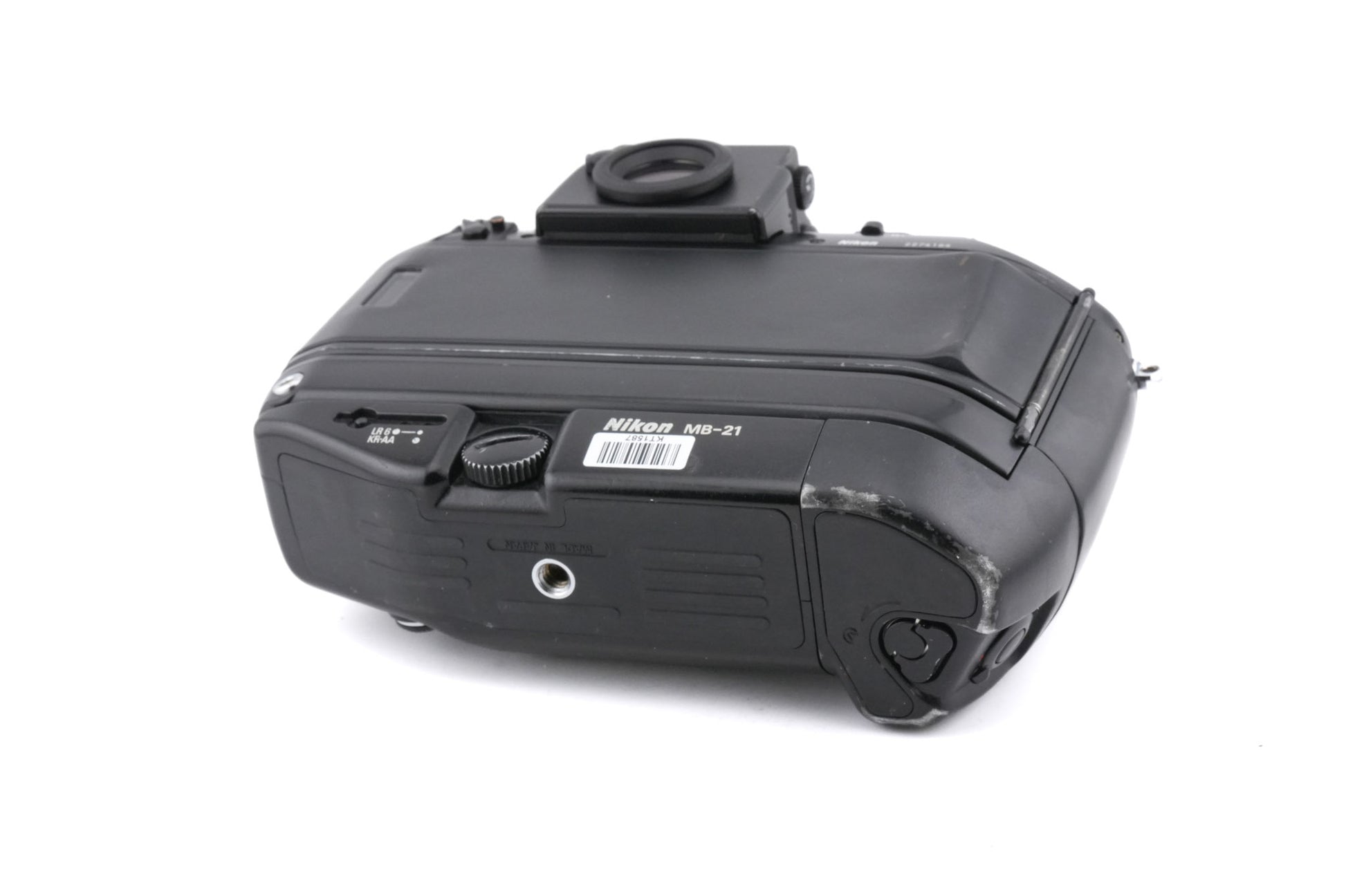 Autofocus F-mount 35mm SLR released by Nikon in 1988. The F4s is a standard F4 body with the MB-21 battery grip. Like other professional F cameras, the F4 has a wide variety of finders, focusing screens, film backs, grips, and other accessories. Metal and plastic body available in black with a red accent.