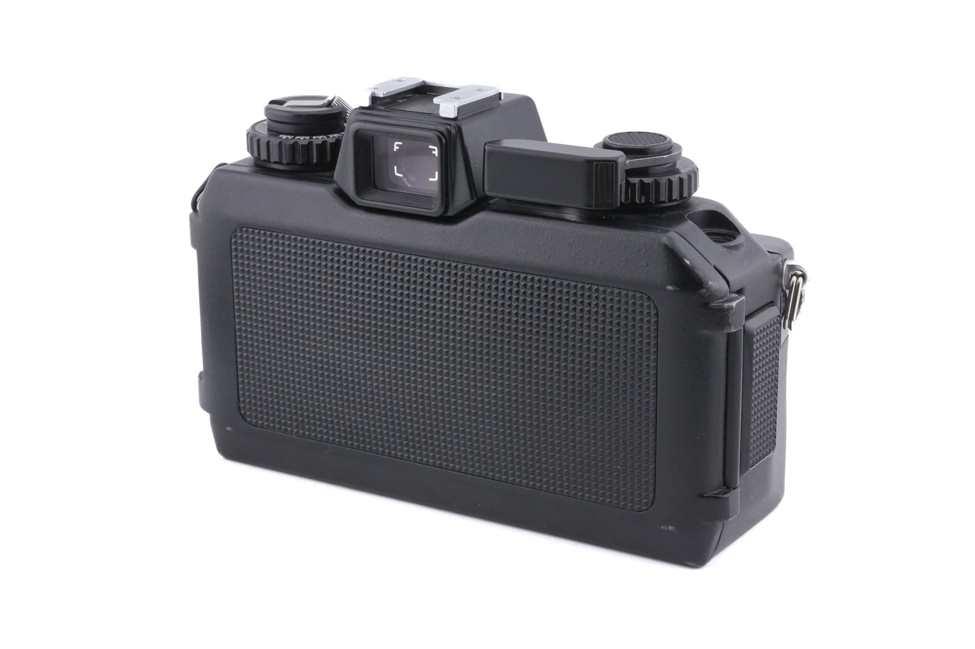 Manual focus Nikonos mount 35mm camera released by Nikon in 1980. It was the first Nikonos camera to require a battery for operation and to have automatic exposure. It was also the first Nikonos camera to feature an entirely unique design not based on earlier Calypso cameras. Metal body available in black.