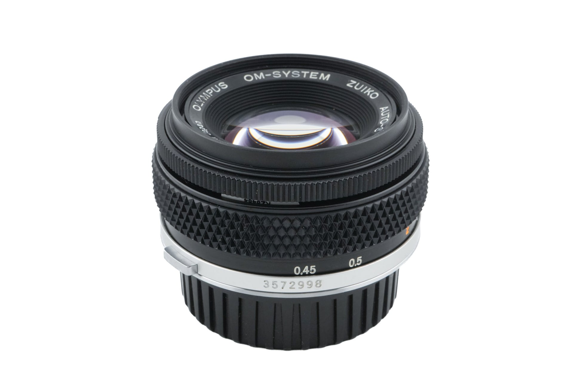 Manual focus normal lens made for OM-mount 35mm SLRs by Olympus. Metal body available in black.