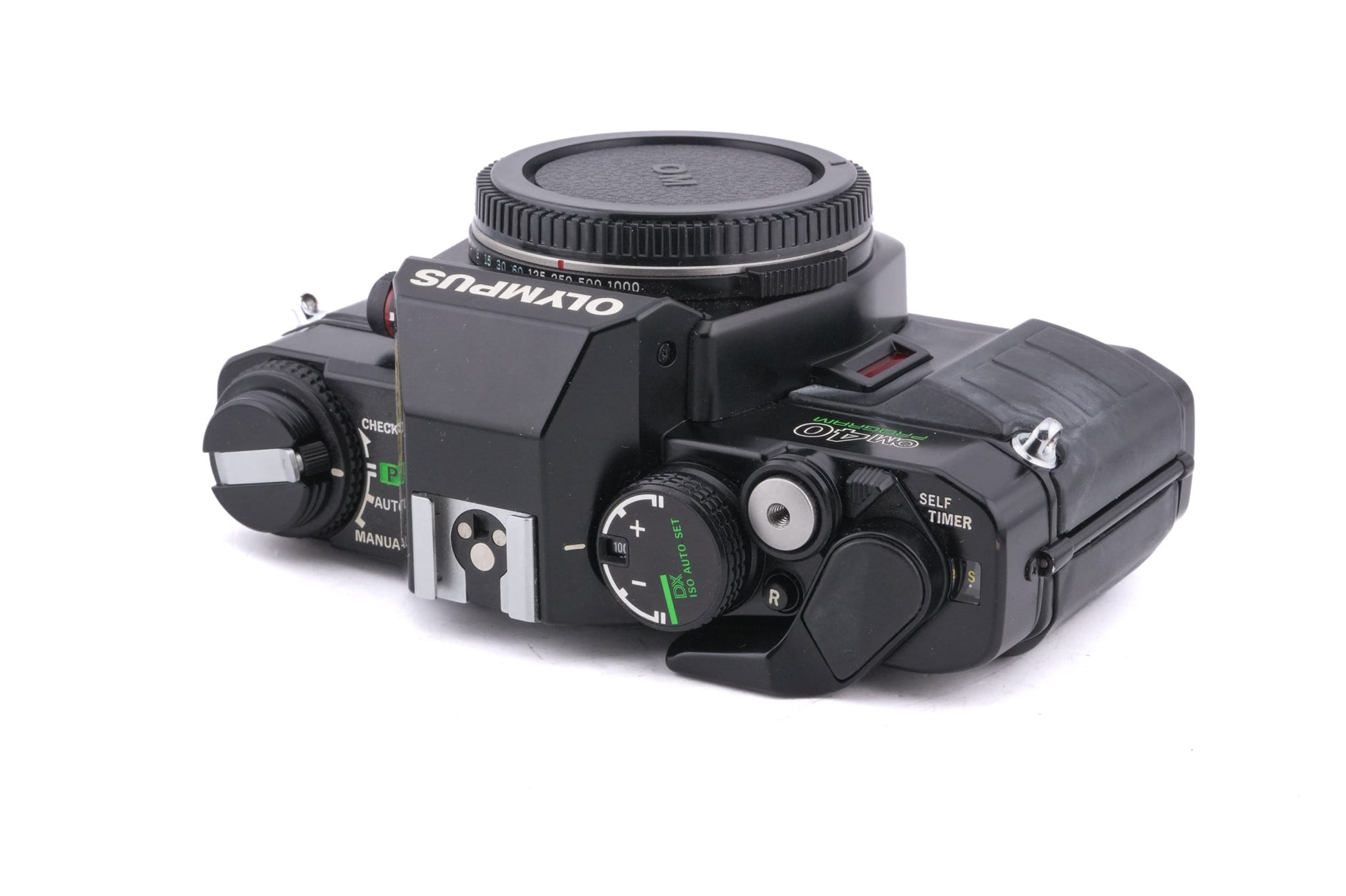 Manual focus OM-mount 35mm SLR released by Olympus in 1985. It added fully programmed exposure to the previous double-digit OM bodies. Plastic body available in black.