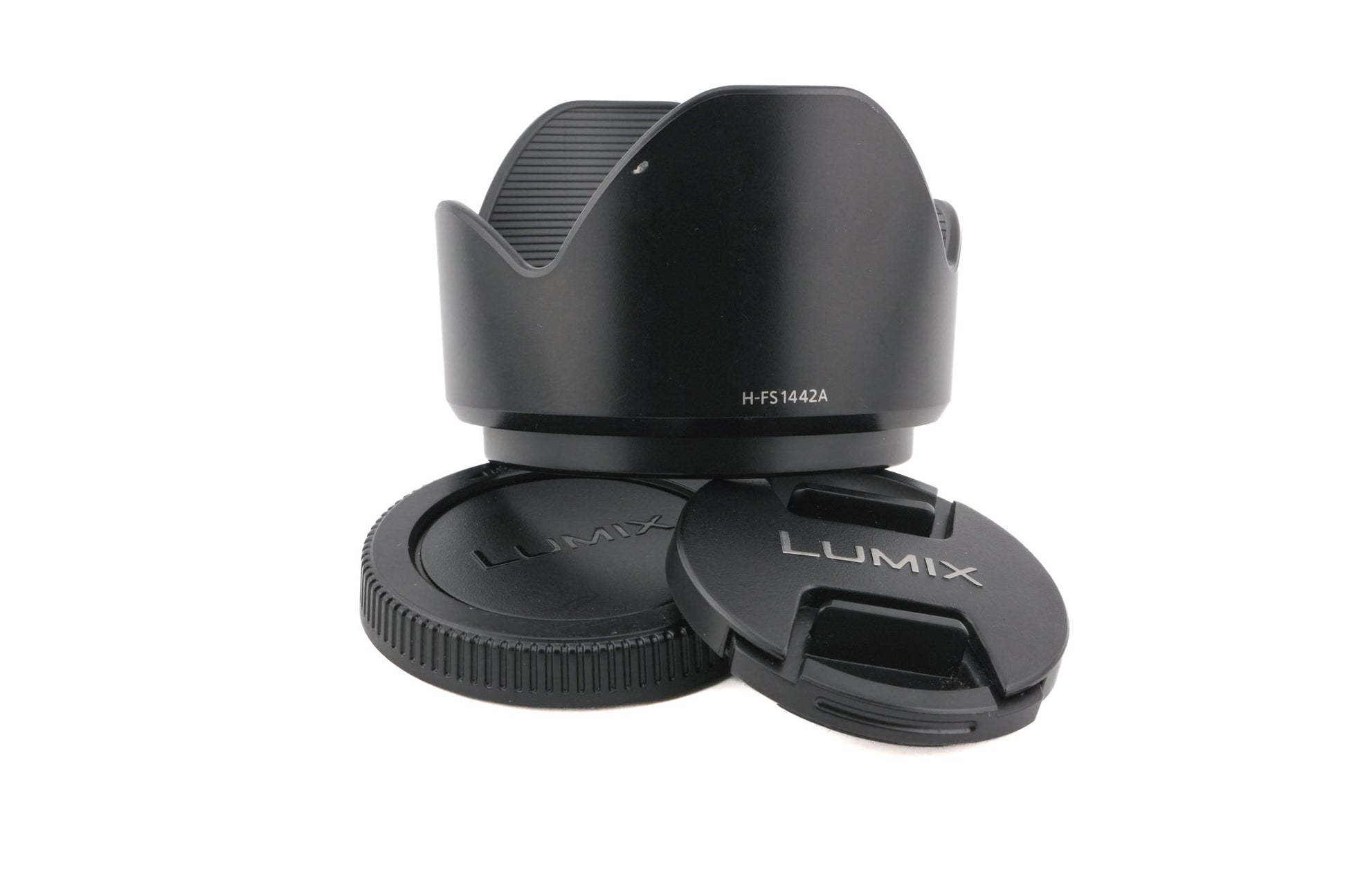 This Panasonic 14-42mm f3.5-5.6 Lumix G Vario ASPH. Mega O.I.S. (H-FS1442A) includes: