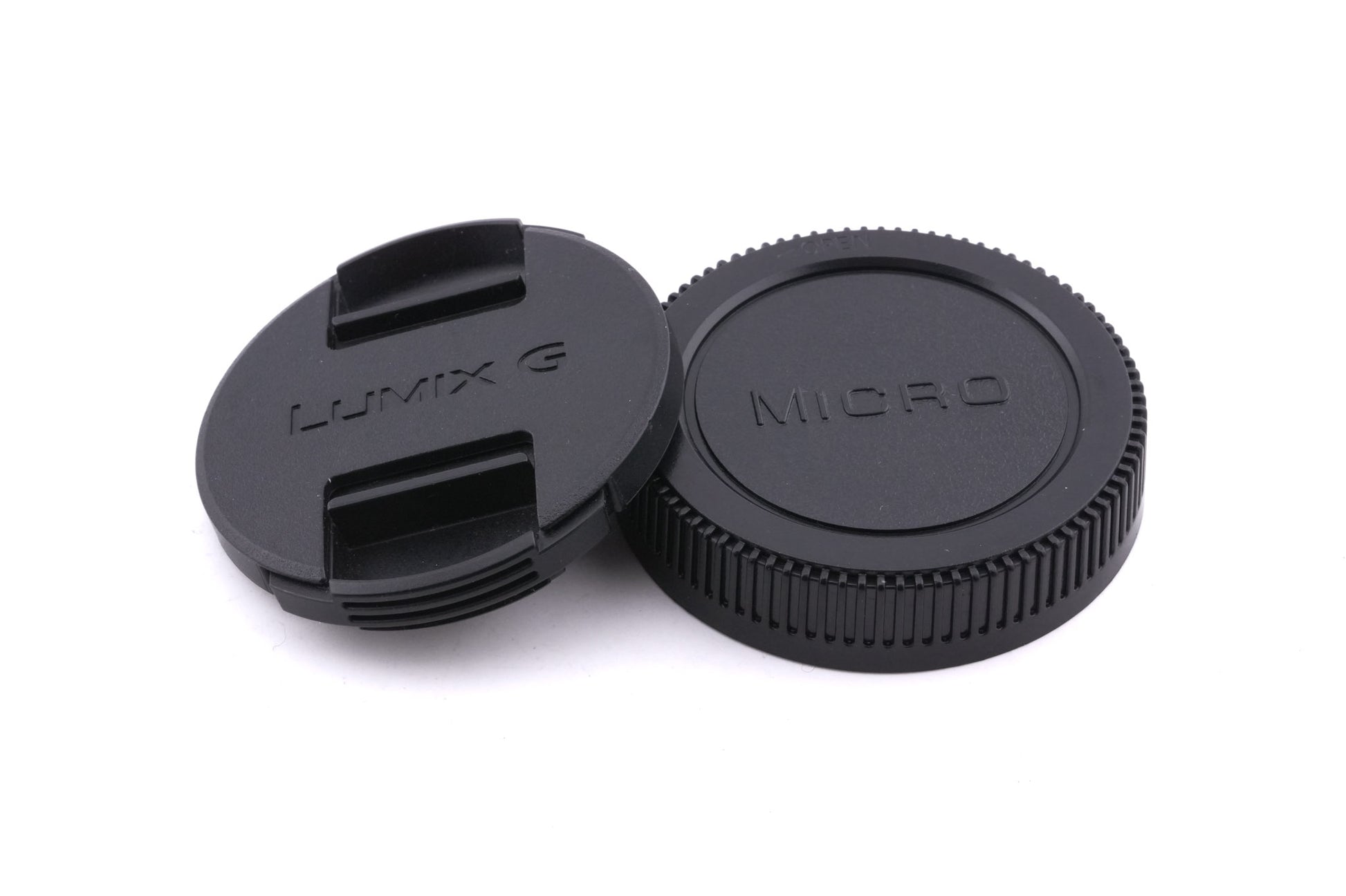 Autofocus normal lens made for Micro Four Thirds mirrorless cameras by Panasonic. It gives the equivalent field of view to a 50mm lens on full frame/35mm. The lens uses aspherical elements (ASPH) to improve optical performance and reduce size. Plastic body available in black and silver.