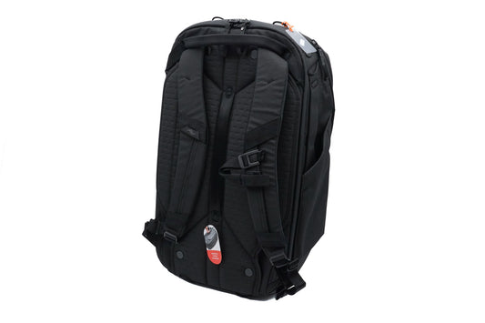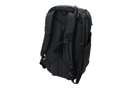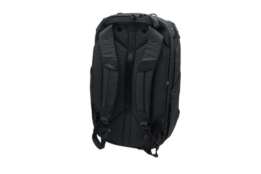 Expandable carry-on travel backpack made by Peak Design. Fabric body available in brown and black.