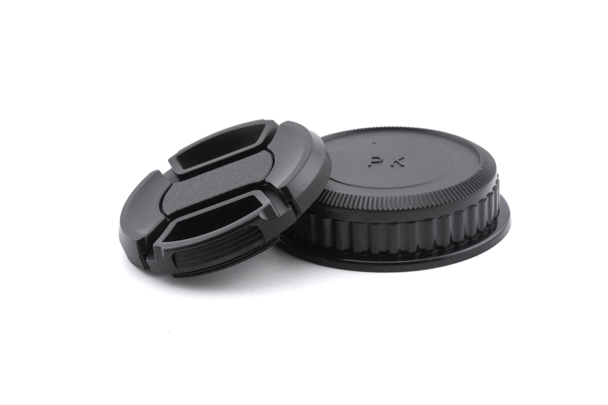 Manual focus normal lens made for K-mount 35mm SLR cameras by Pentax. It does not work with the automatic modes of later Pentax models. Plastic/metal body available in black.