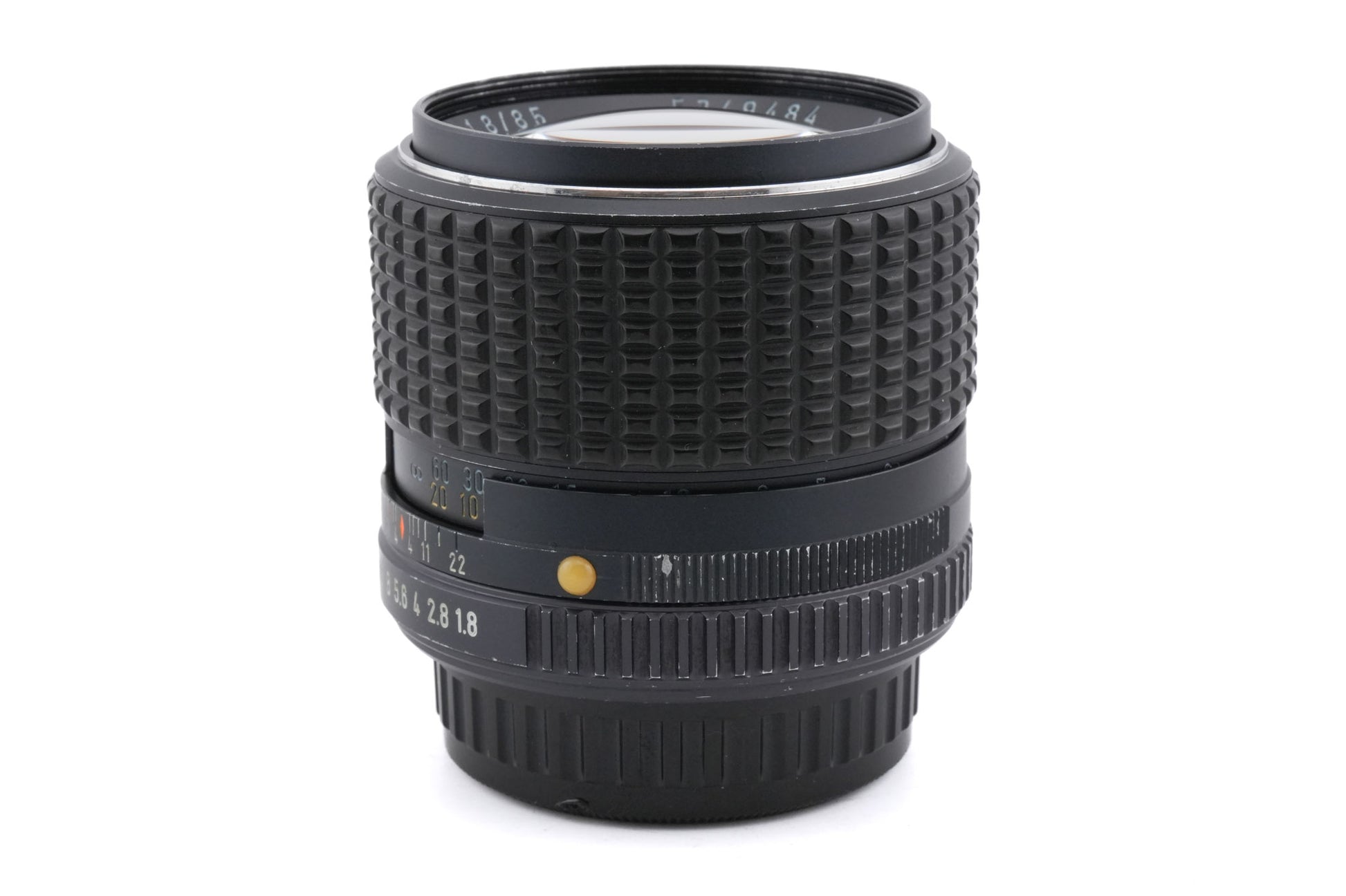 Manual focus portrait lens made for K-mount SLRs by Pentax starting in 1975. Black metal body.