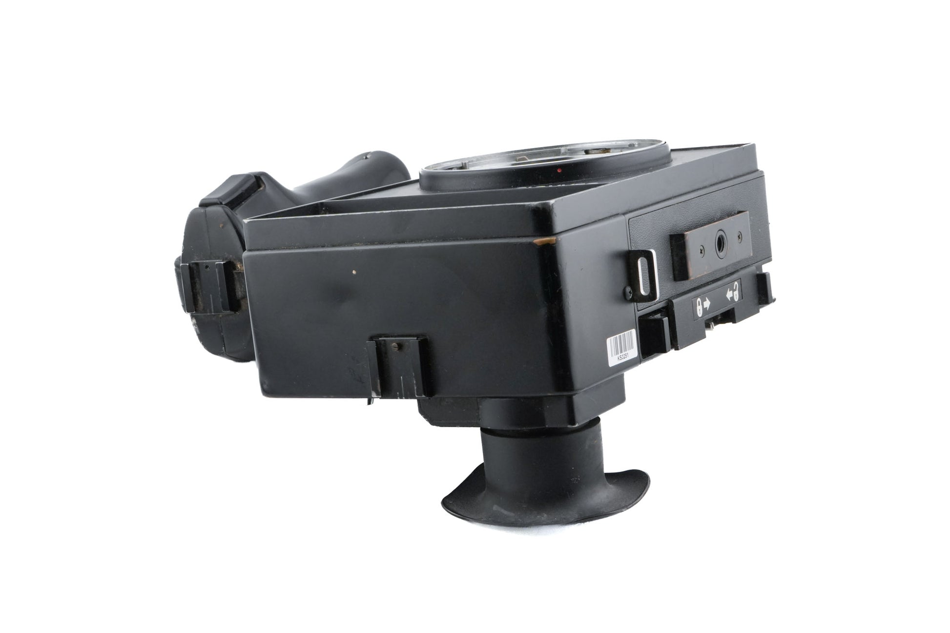 Manual focus instant film rangefinder camera introduced by Polaroid. It was based on the Mamiya Press cameras and uses Mamiya lenses. The SE model added interchangeable lenses wereas the older 600 model had a fixed 127mm. It uses Polaroid 3 ¼ × 4 ¼ instant pack films. Metal body available in black.