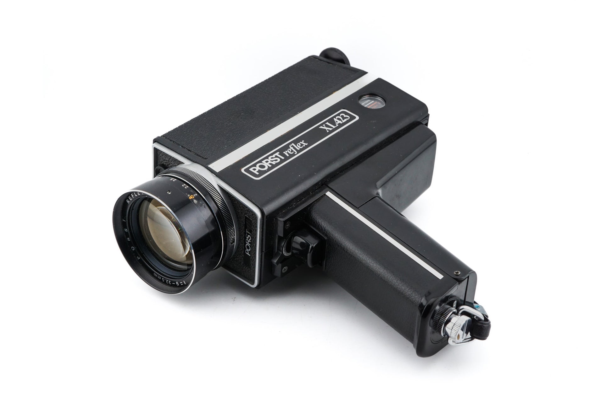 Manual focus Super 8 movie camera released by Porst. It uses a mirror to achieve a TTL view similar to 35mm SLRs. Metal/plastic body available in black.