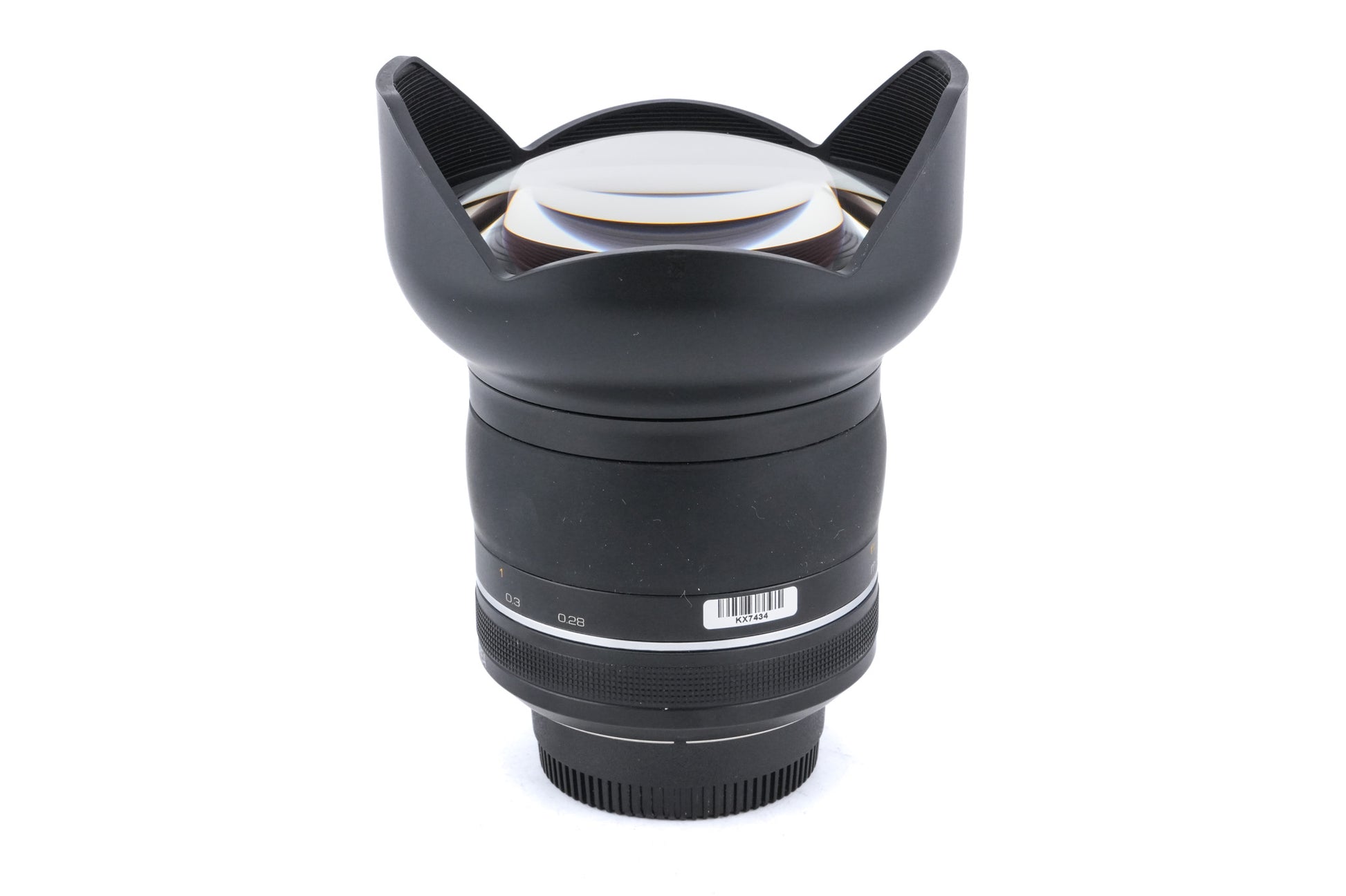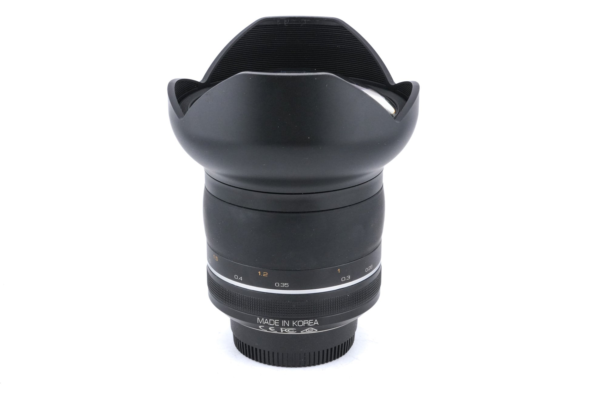 Manual focus wide-angle lens made for Nikon F mount SLRs by Samyang. It is manual focus only, but requires a body capable of controlling the aperture electronically. Metal body available in black.