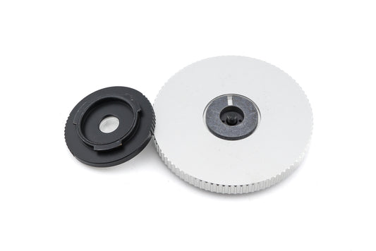 Accessory attachments made for the L-428 light meter by Sekonic. These accessories allow for the light meter to be used for enlarging. It consists of a meter cover and a dial. Metal/plastic body available in black/white.