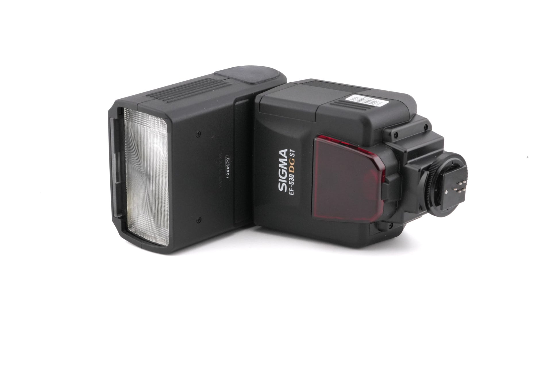 Flash made by Sigma for Canon EF SLRs. It has a built-in wide-angle adapter, tilt/shift functionality, and a slave mode. Plastic body available in black.