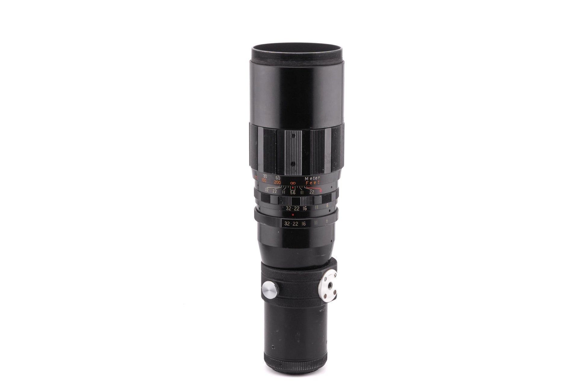 Manual focus telephoto lens made for M42 screw mount 35mm SLR cameras introduced by Soligor. Metal body available in black.