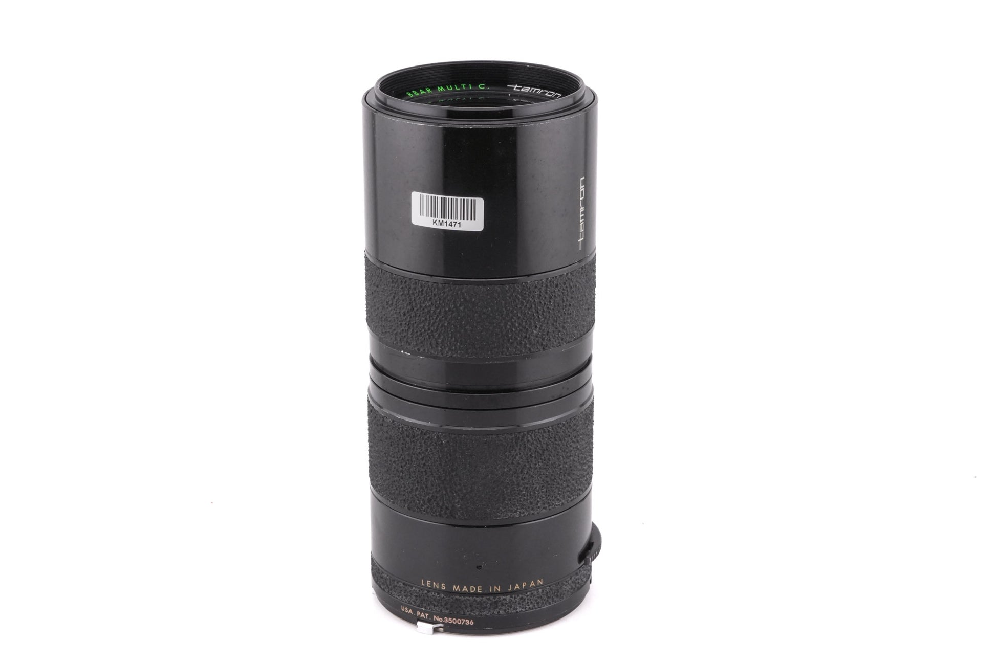 Manual focus telephoto macro zoom lens made for the Adaptall system by Tamron. Metal body available in black.