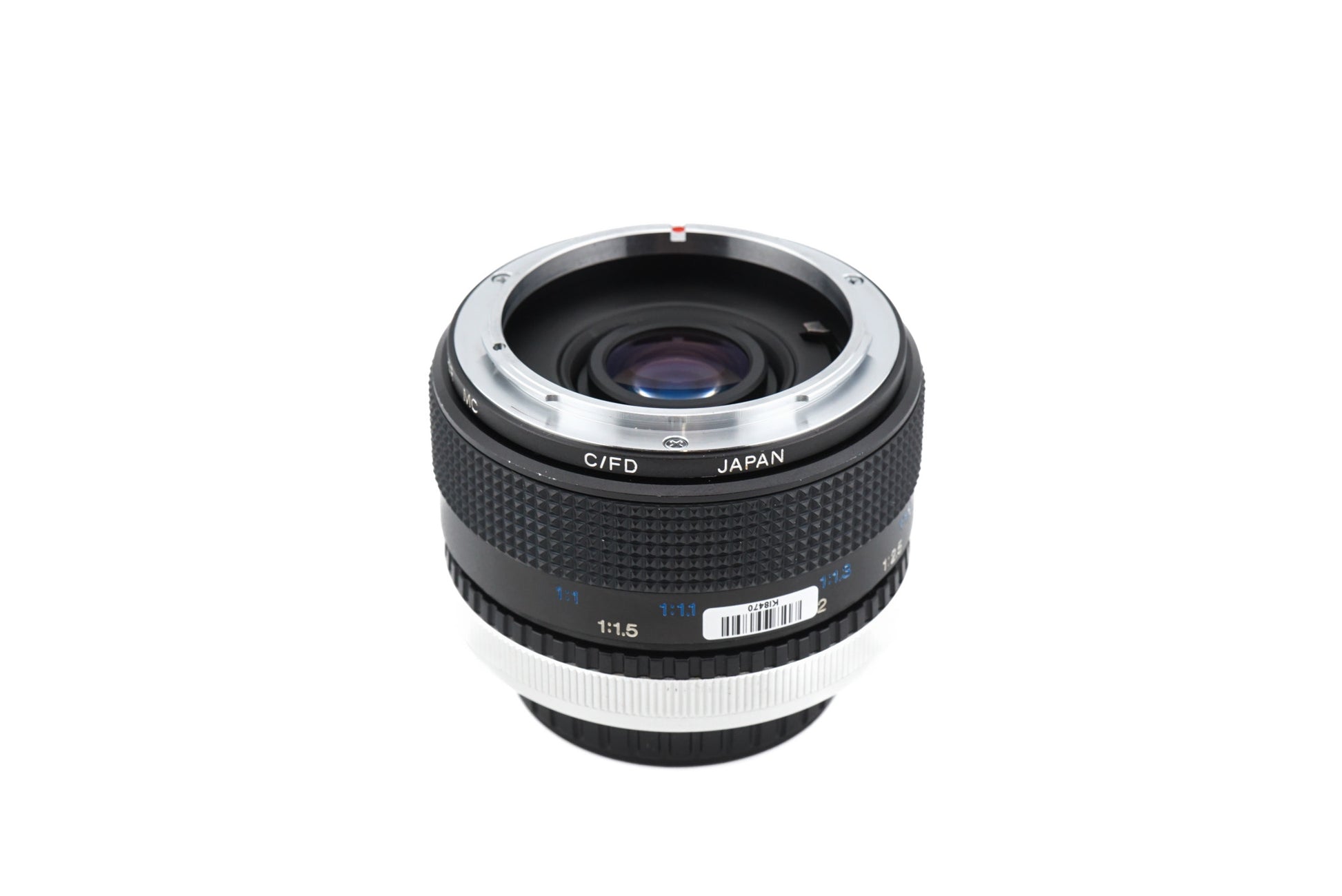 2x teleconverter made for Canon FD-mount SLR cameras by Vivitar. It features an adjustable helicoid. Metal body available in black.