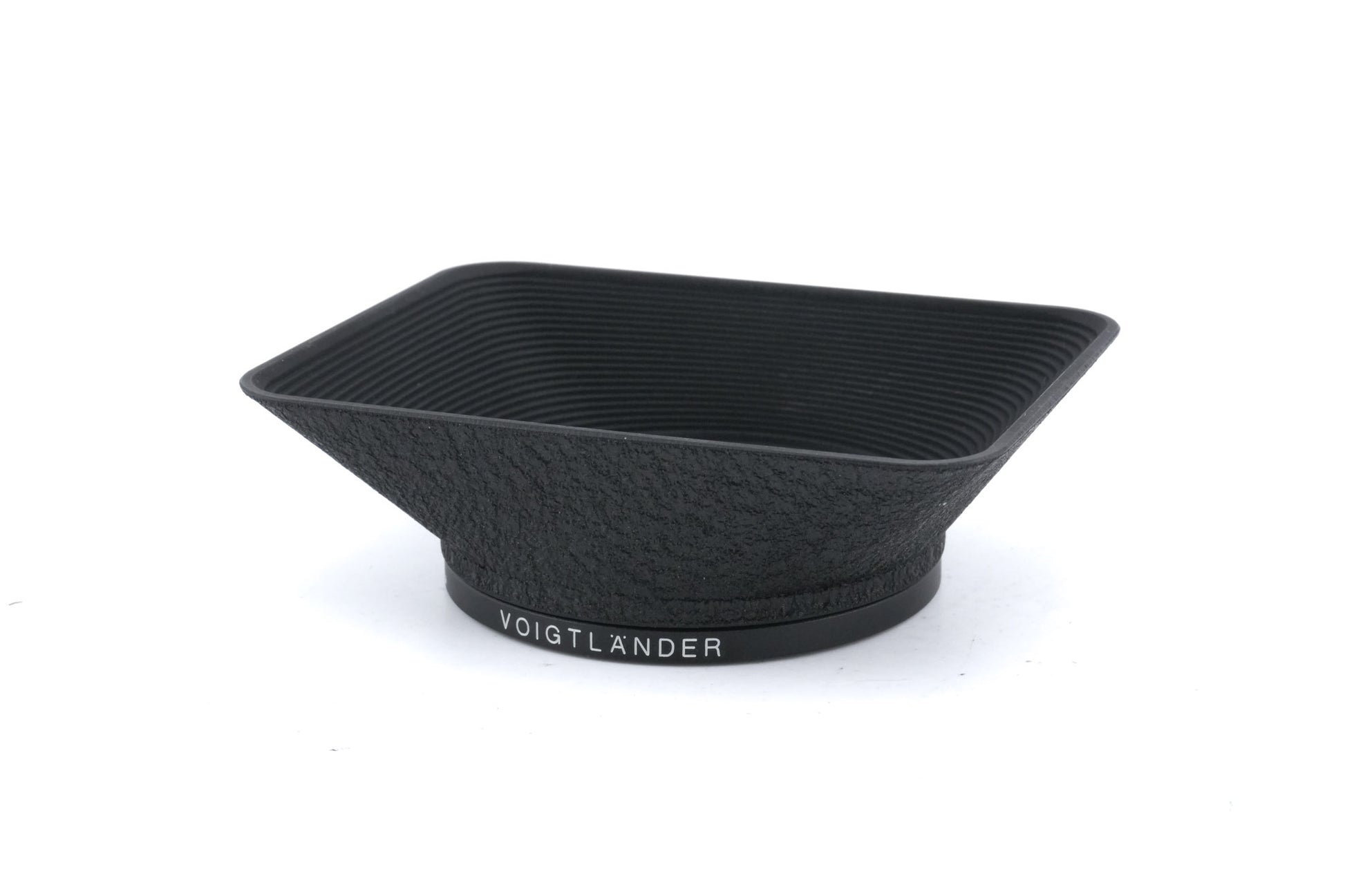 Lens hood made for Voigtländer the 21mm f3.5 Color-Skopar VM lens by Voigtländer. Black metal construction.