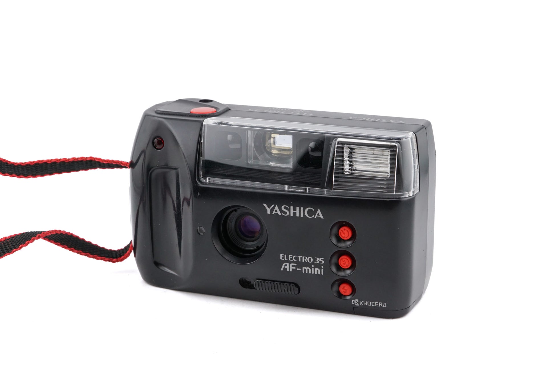Autofocus 35mm point-and-shoot camera made by Yashica. Has a built-in flash. Plastic body available in black.