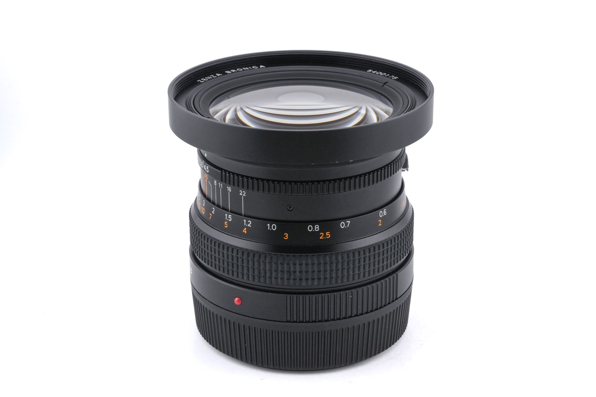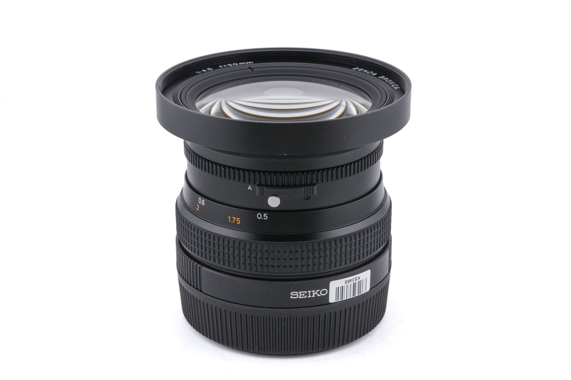 Manual focus super-wide-angle lens made for the Bronica GS medium format system by Zenza Bronica in 1983. It has a 25mm equivalent focal length on 35mm full frame. It also has in-between aperture stops. The lens is not recommended (by the manufacturer) to be used together with the Zenza Bronica G 2x and 1.4x tele-converters due to optical degradation. Metal body available in black.